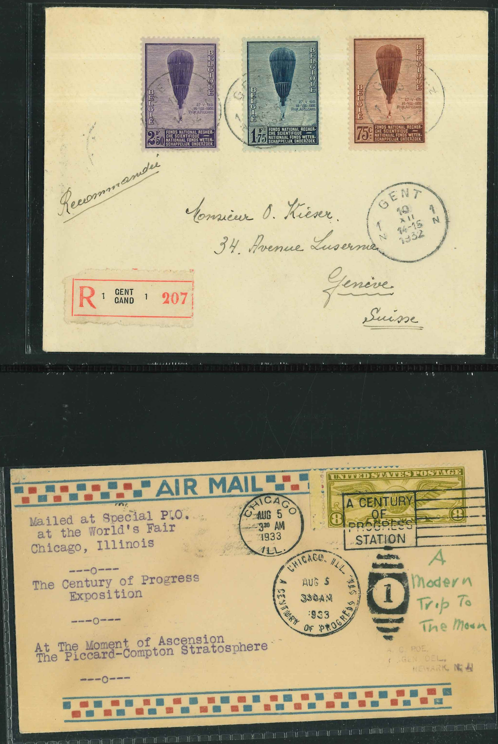 1932 (Feb 25) and 1932 (Apr 17), two Bertram Atlantis-Expedition covers flown from Berlin to Australia, the first with stamps franked at Switzerland, Italy, Greece, Syria, Iraq, Iran, India, Ceylon, Thailand, Straits Settlements and