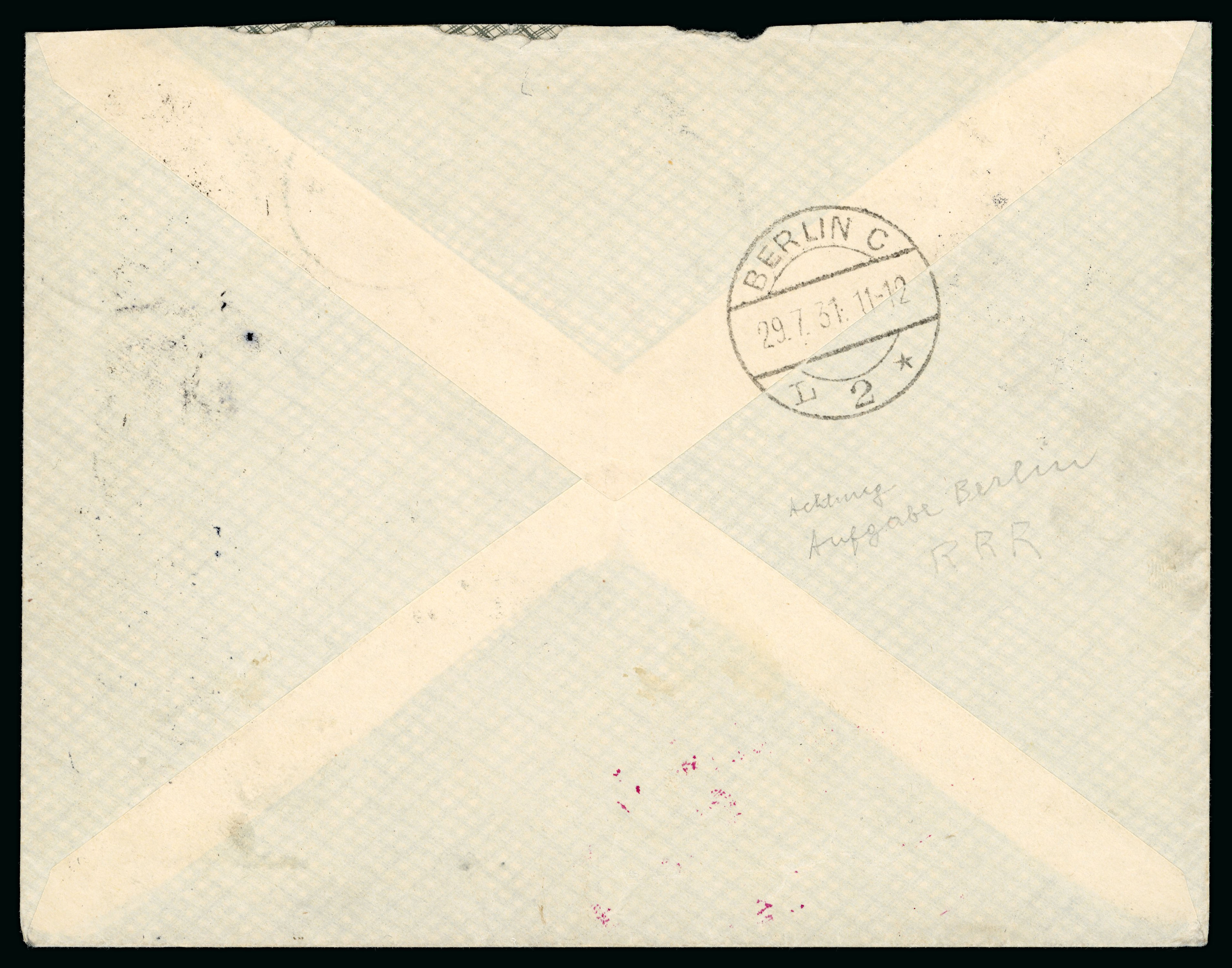 1931 (8.8-1.9.) Flight cover from List, Germany over Iceland (franked 50ä airmail), Greenland, Canada (franked 1c KGV) to Chicago (franked 2c von Steuben), by Wolfgang von Gronau with his crew to test this route with the Dornier Flying