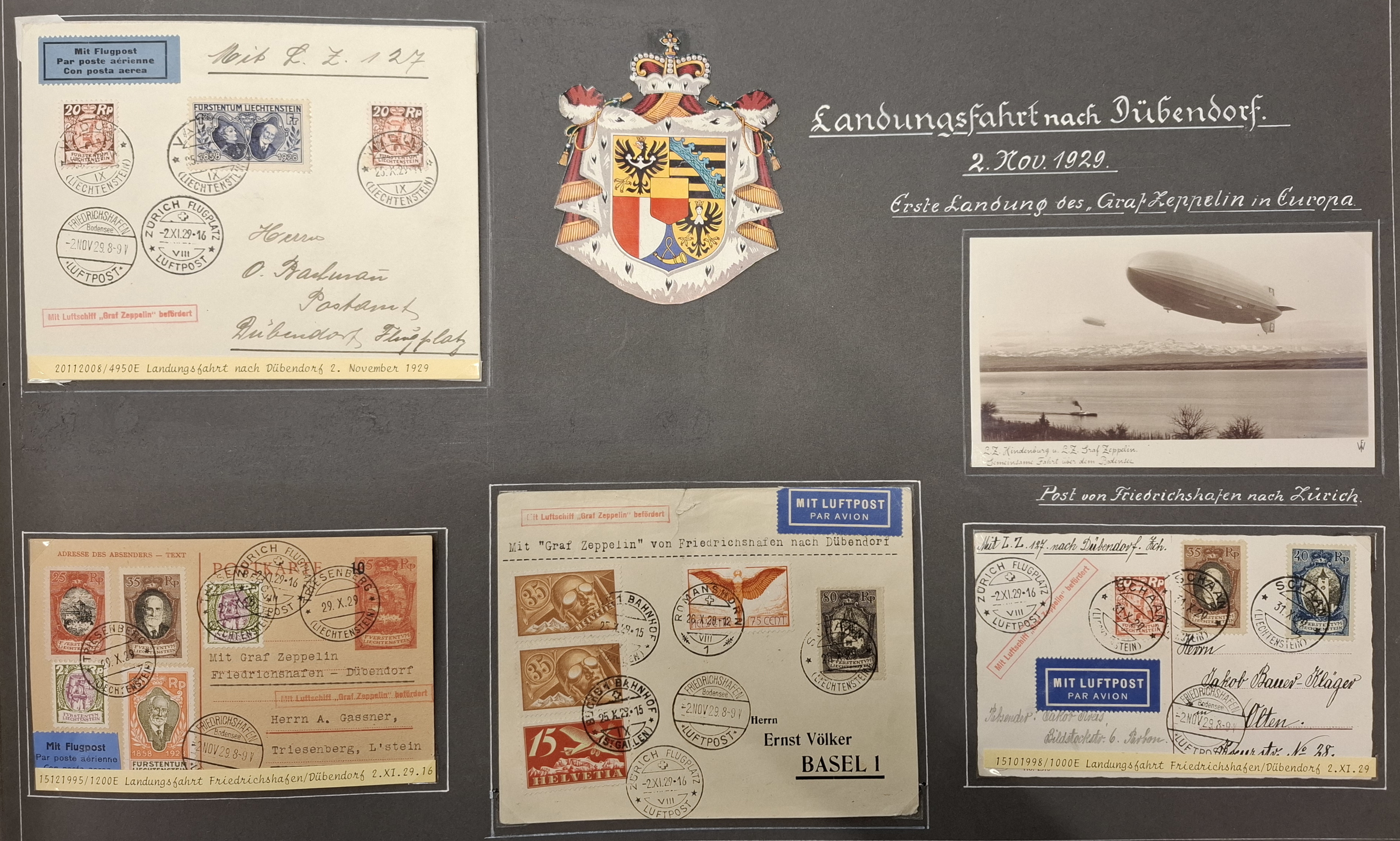 wonderfully documented, including both drops, World tour with Königsberg drop, Sieger 30 Ac feeder Danzig (a rarity), rare Porrentruy drop on the America trip, 2nd Switzerland trip drop Interlaken, then a wealth of often rare drops, Liechtenstein