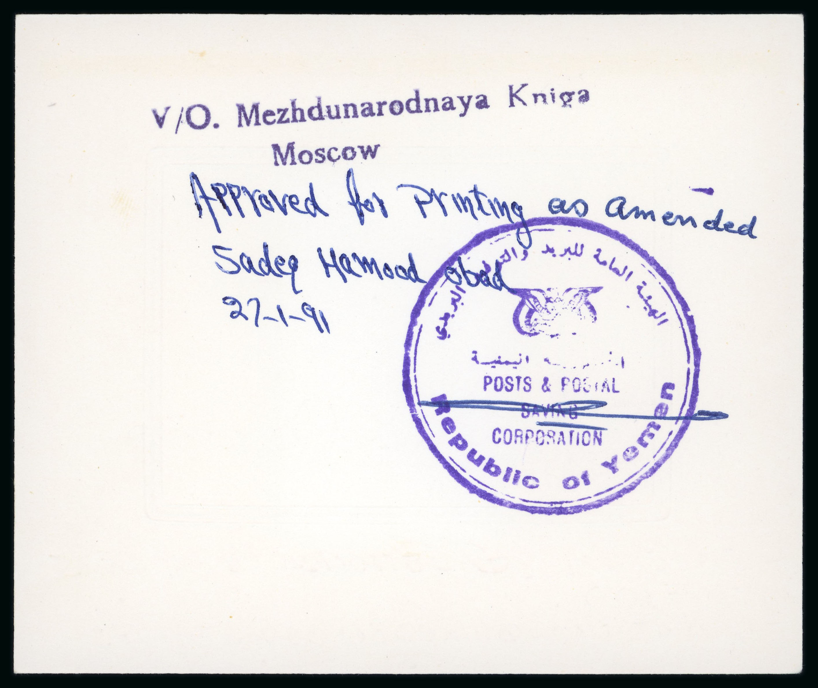 manuscript approval notes and handstamp of the Yemen Post Office (Image 1)