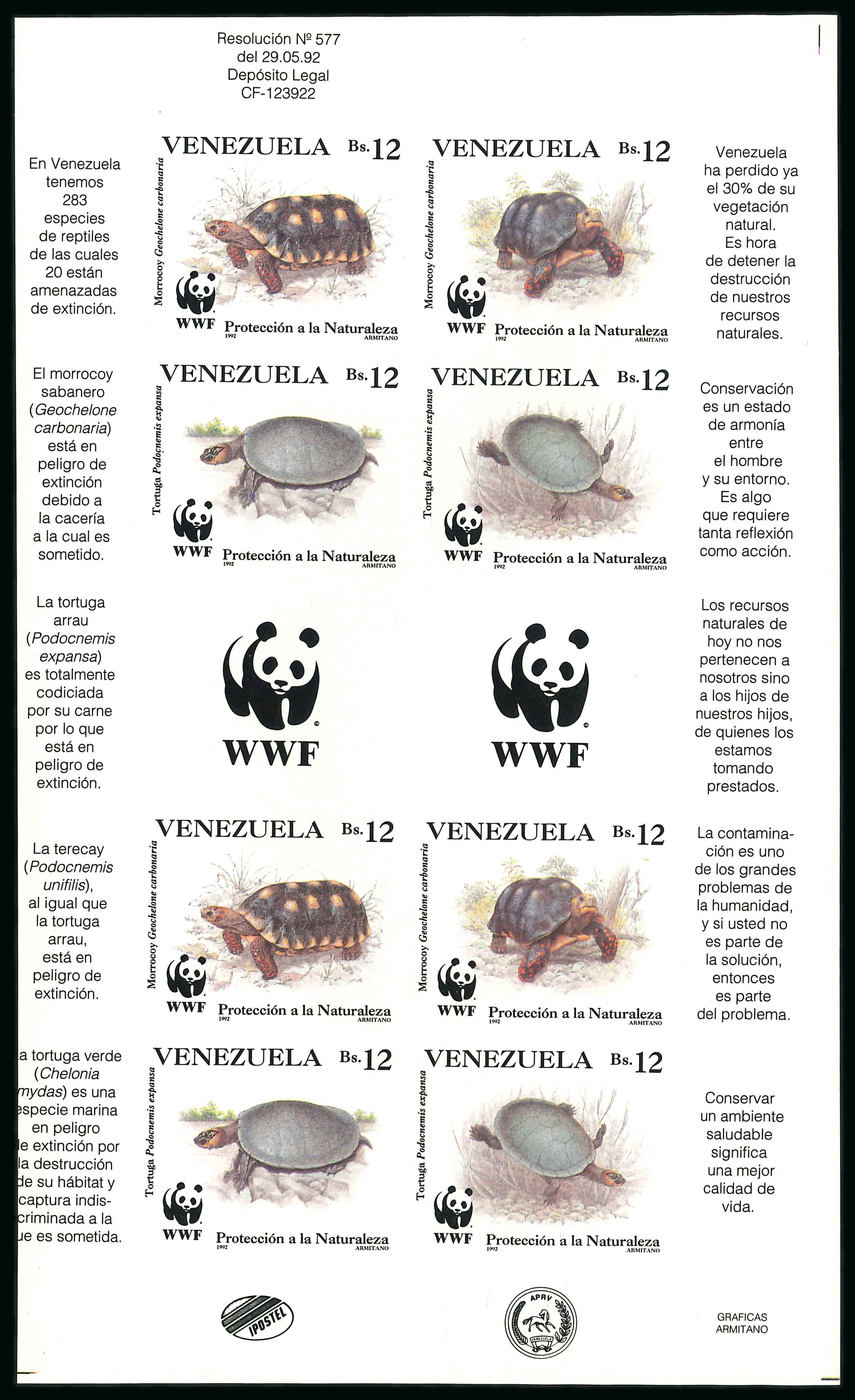 1996 Crocodile set of seven values and miniature sheet individually mounted onto embossed card bearing signature and handstamp of the Moscow printers, these are all dated 1995, the issued stamps were dated 1996, rare