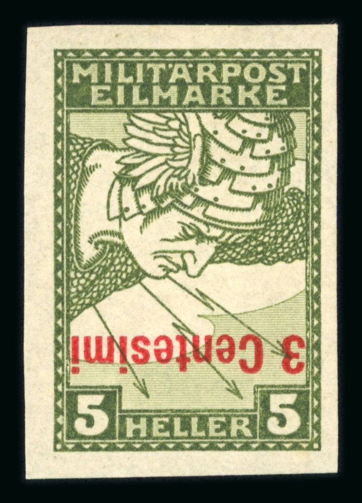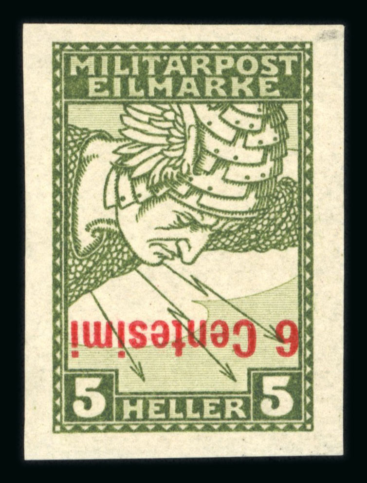 1918, Eilmarken mit ROTEM AUFDRUCK kopfstehend, postfrisch, echt und einwandfrei, Attest Soecknick, ANK 24 P I K / 25 P I K , ANK 500€. (Image