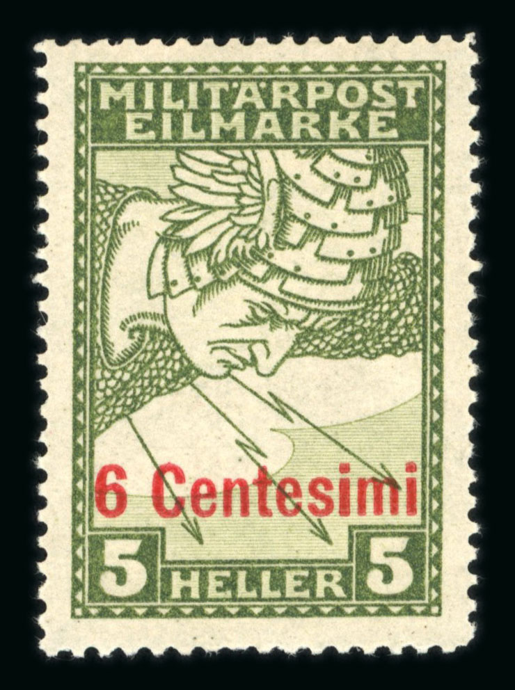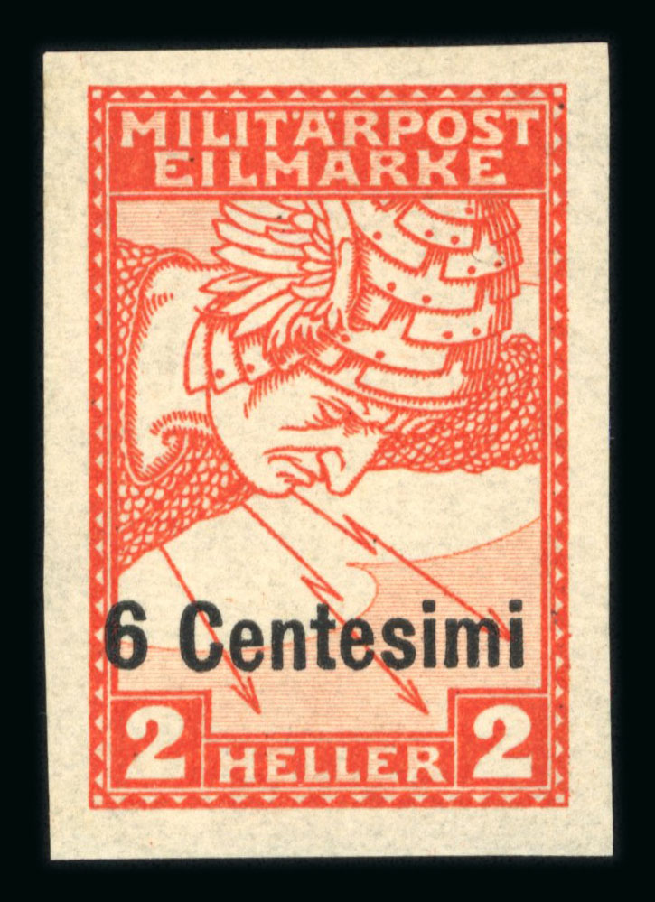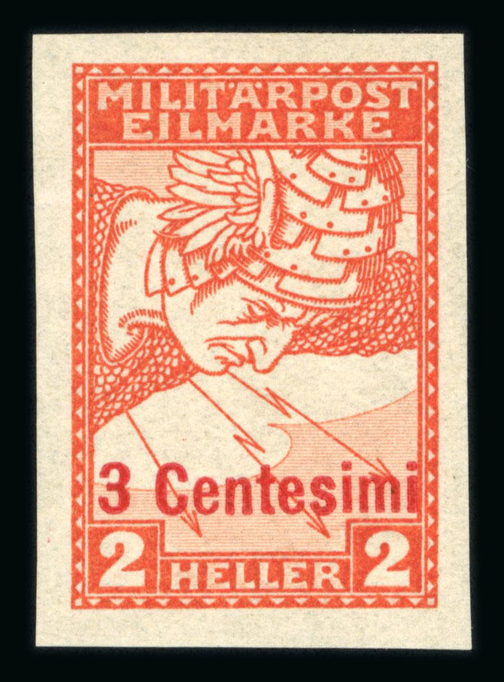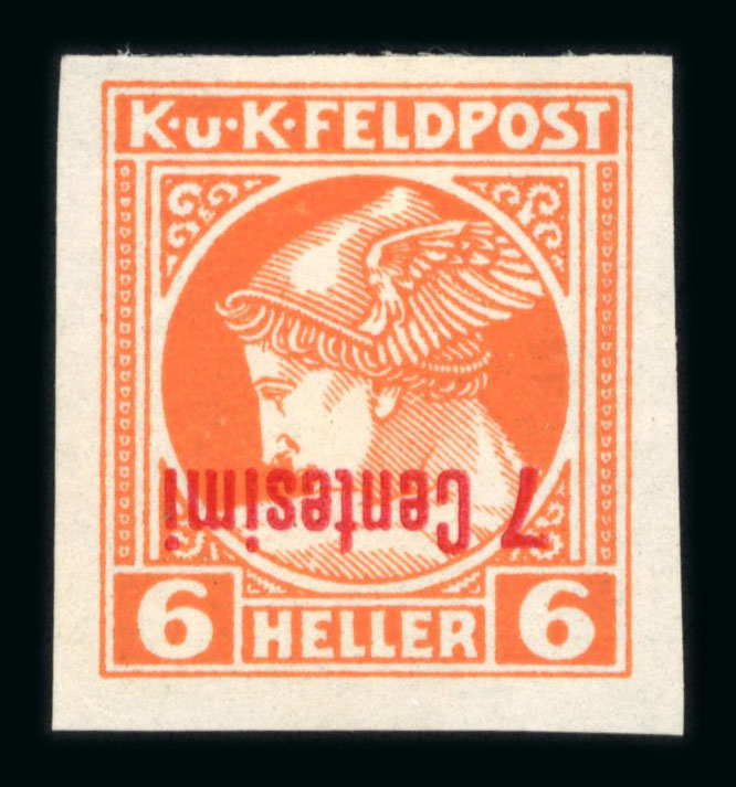 1918-19, nicht verausgabter Satz mit ROTEM KOPFSTEHENDEN AUFDRUCK, gezähnt, ungebraucht mit Originalgummierung, echt und einwandfrei, Attest Soecknick, ANK I P I K / XIII P I K, KW 500€. (Image 1)