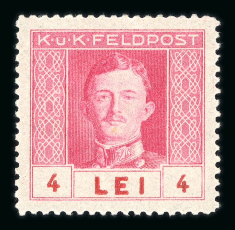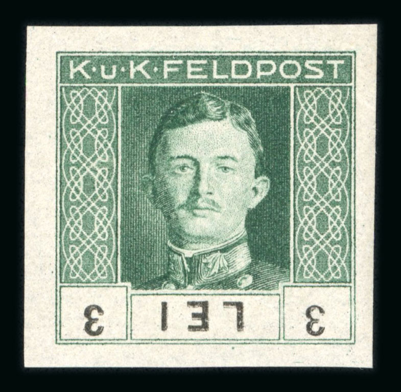 1917, gezähnter Normalsatz und gezähnt mit kopfstehendem Aufdruck und ungezähnter Satz und Kronenwerte mit rotem Aufdruck in einwandfreier ungebrauchter Erhaltung, die Abarten mit Befund Soecknick, ANK 1 - 17 + 1 K - 17 K + 1 U - 17 U + 1