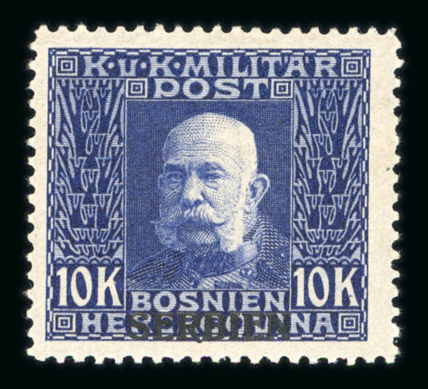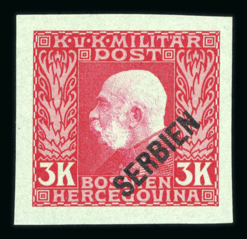 1916, Sog. 'Serbien schräg', gezähnter postfrischer und ungezähnter ungebrauchter Satz mit schrägem Aufdruck "SERBIEN", echt und einwandfrei, Attest Soecknick für ANK 22 U / 42 U, ANK €730. (Image 1)
