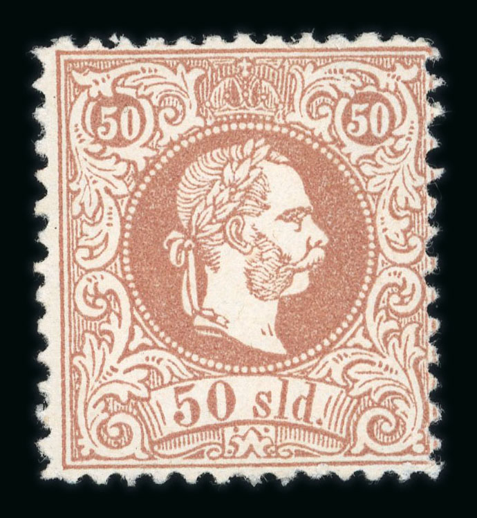 1867, 50so - Höchstwert MITTE UNGEZÄHNT, ungebraucht, echt und einwandfrei, Attest Ferchenbauer und Buder, ANK 7 I G, KW 450€. (Image 1)