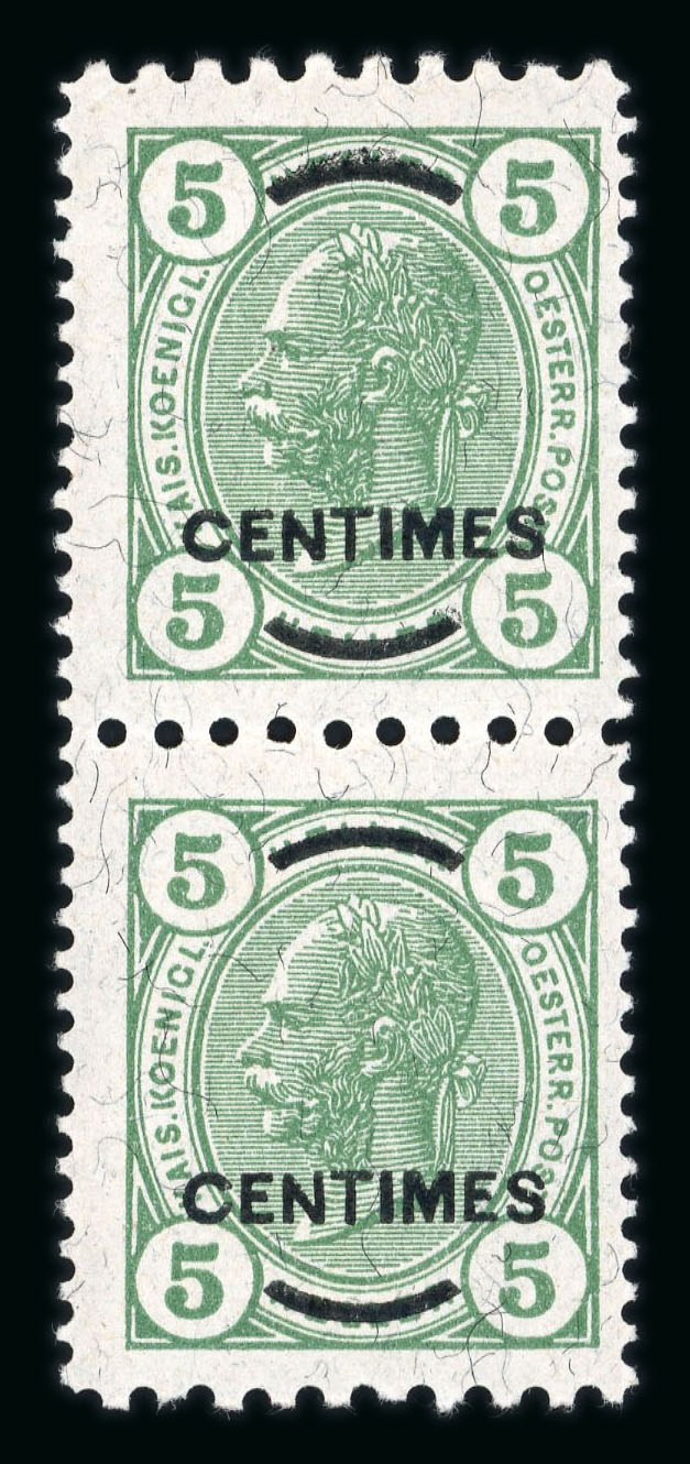 1900, 5pi als senkrechtes Paar mit MITTE UNGEZÄHNT, ungebraucht, echt und einwandfrei, Befund Puschmann, Attest Buder, ANK 36UMs, 200€ +. (Image