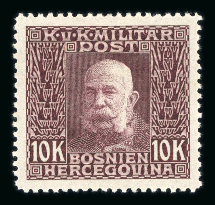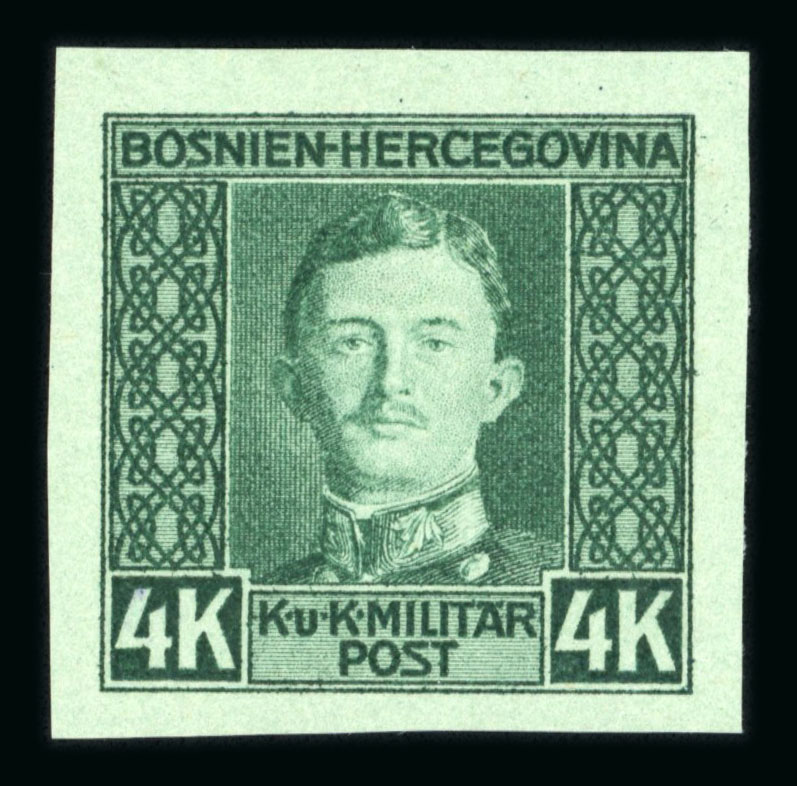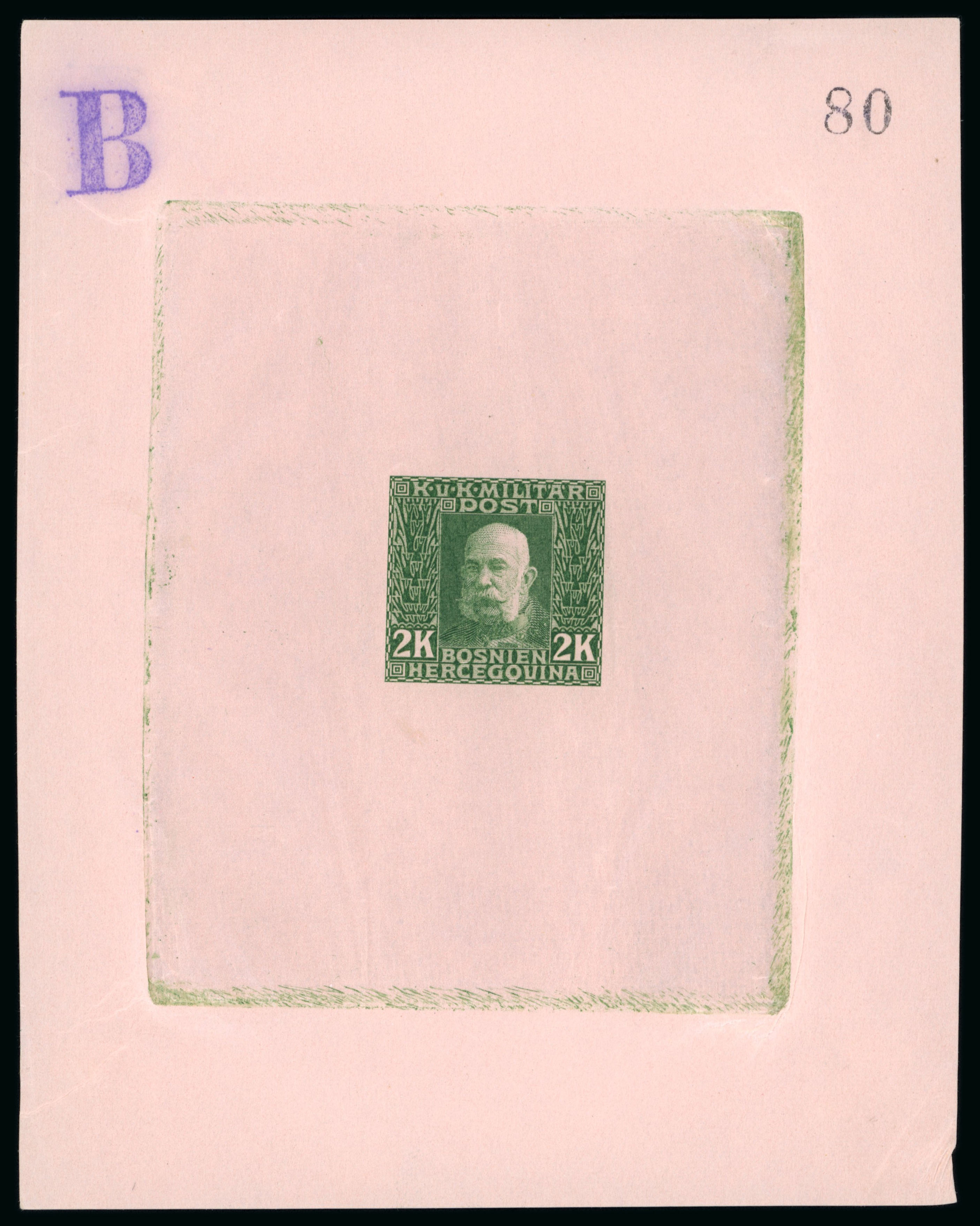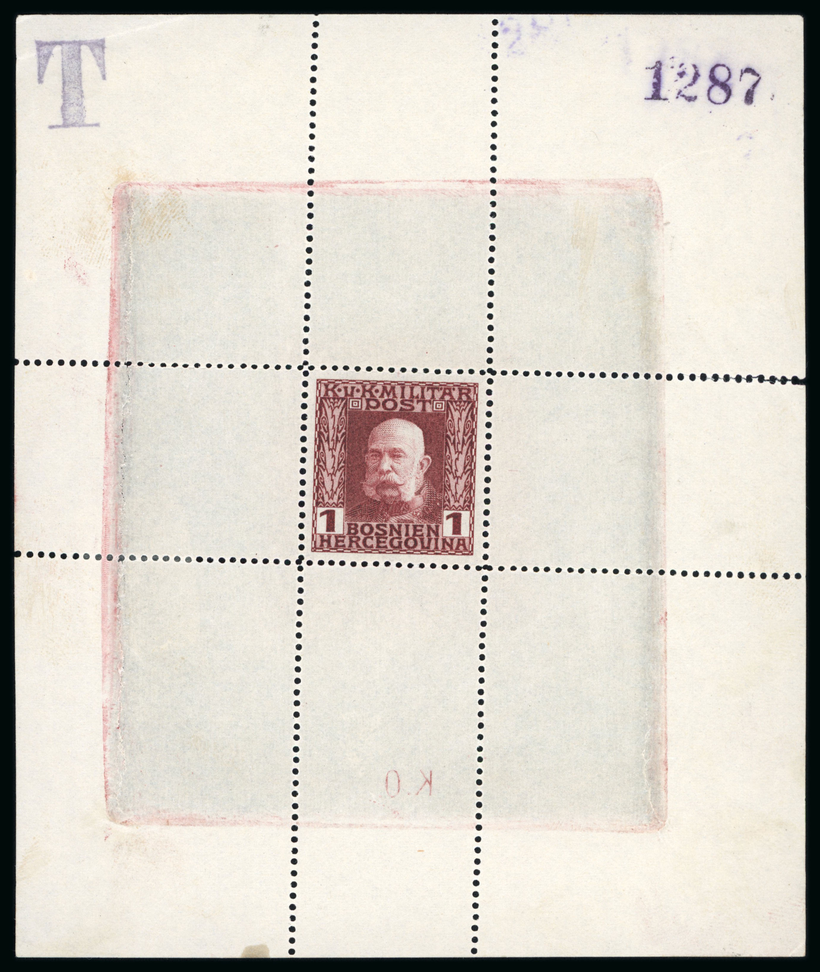 1912, Freimarken Kaiser Franz Joseph, insgesamt 6 dekorative Einzelproben im Kleinbogenformat, gezähnt in Original- oder Probefarbe, ungebraucht in meist guter Erhaltung, selten, ANK € ca. 1600. (Image 1)
