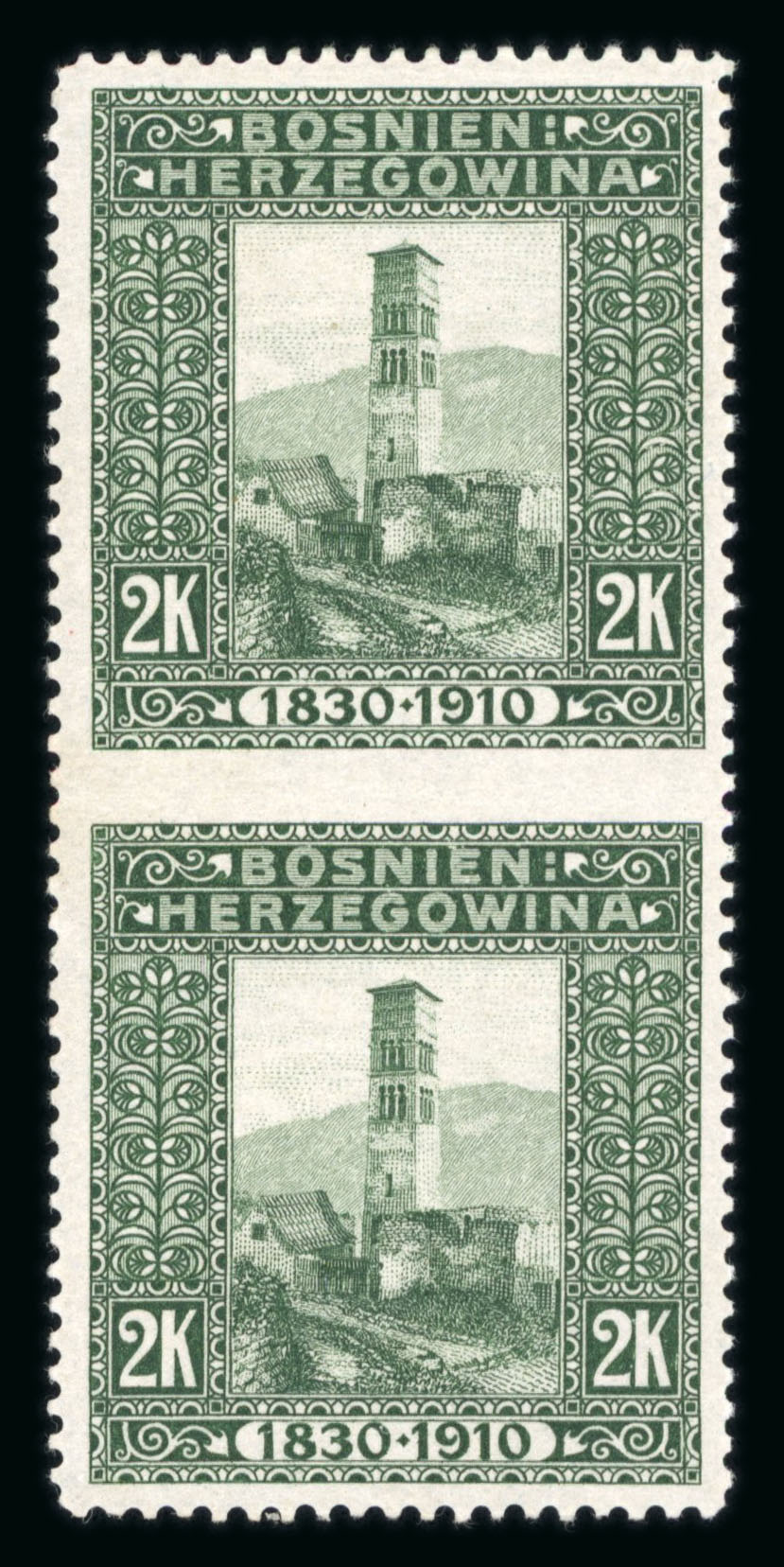 1910, 80. Geburtstag Kaiser Franz Joseph, 2K grün in senkrechtem ungebrauchten Paar mit UNGEZÄHNTER Mitte, Attest und signiert Matl, ANK 59 UM €240. (Image 1)
