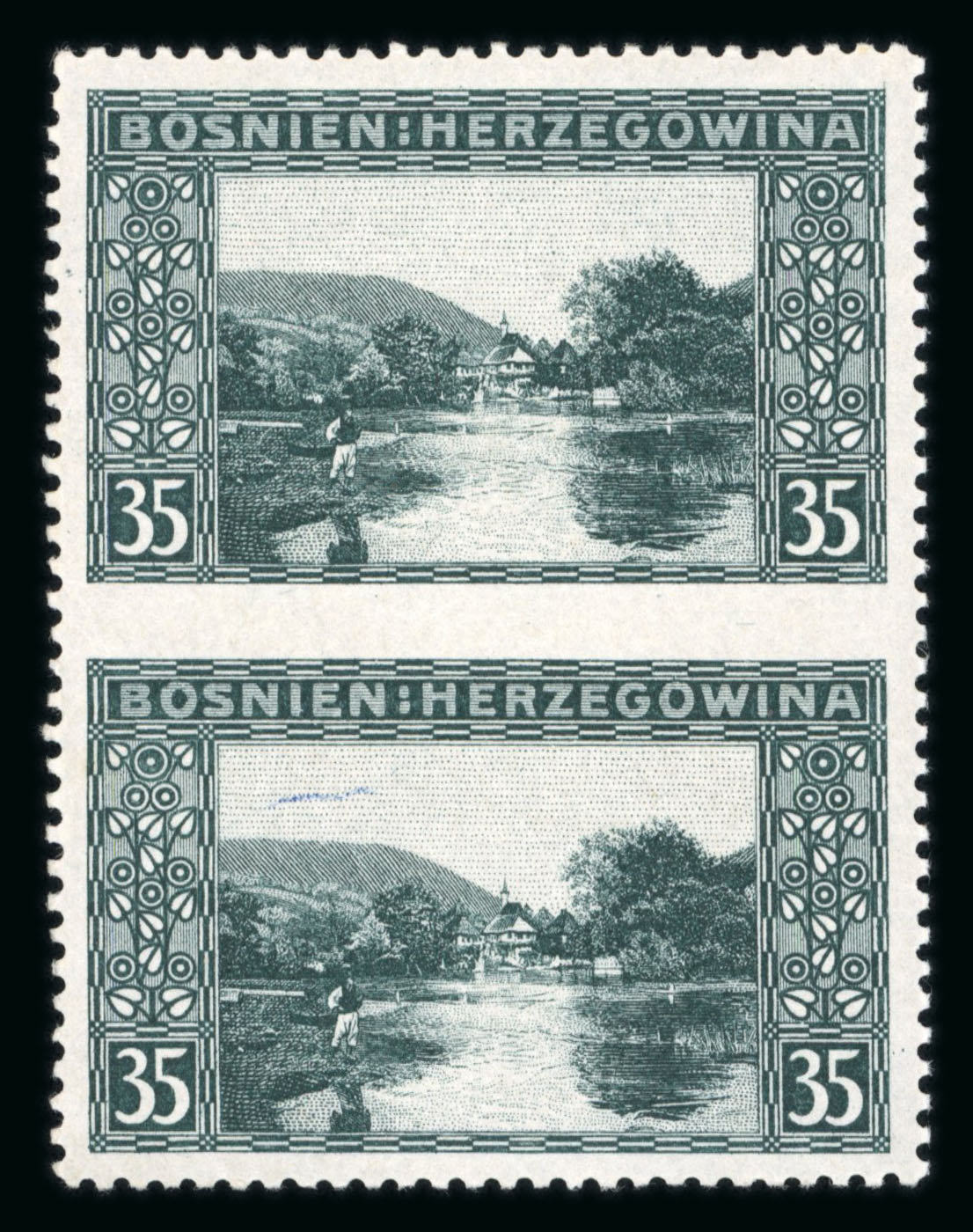 1906, Landschaftsbilder, 2H (2), 35H und 2K, je mit ungezähnten Mitten, teils compound perfs, 35H Attest Puschmann, 2K Befund Söcknick, ANK 30, 35, 43. (Image 1)