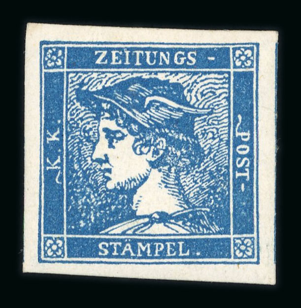 1851, Zeitungsmarke Blauer Merkur dunkelblau in Type IIIa (lt. Attest Matl IIa) ungebraucht (wie üblich mit Gummicraquelen), farbfrische Prachterhaltung. (Image 1)