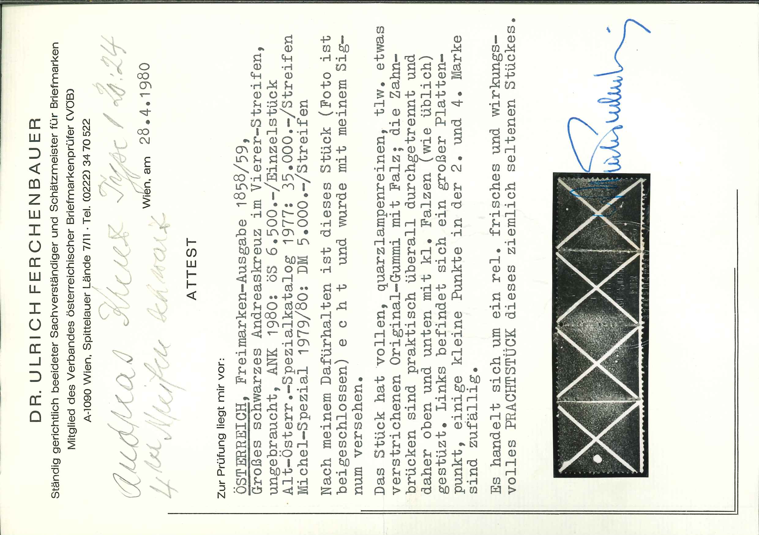 Seltenheit, Attest Ferchenbauer, ANK €6000. (Image 1)