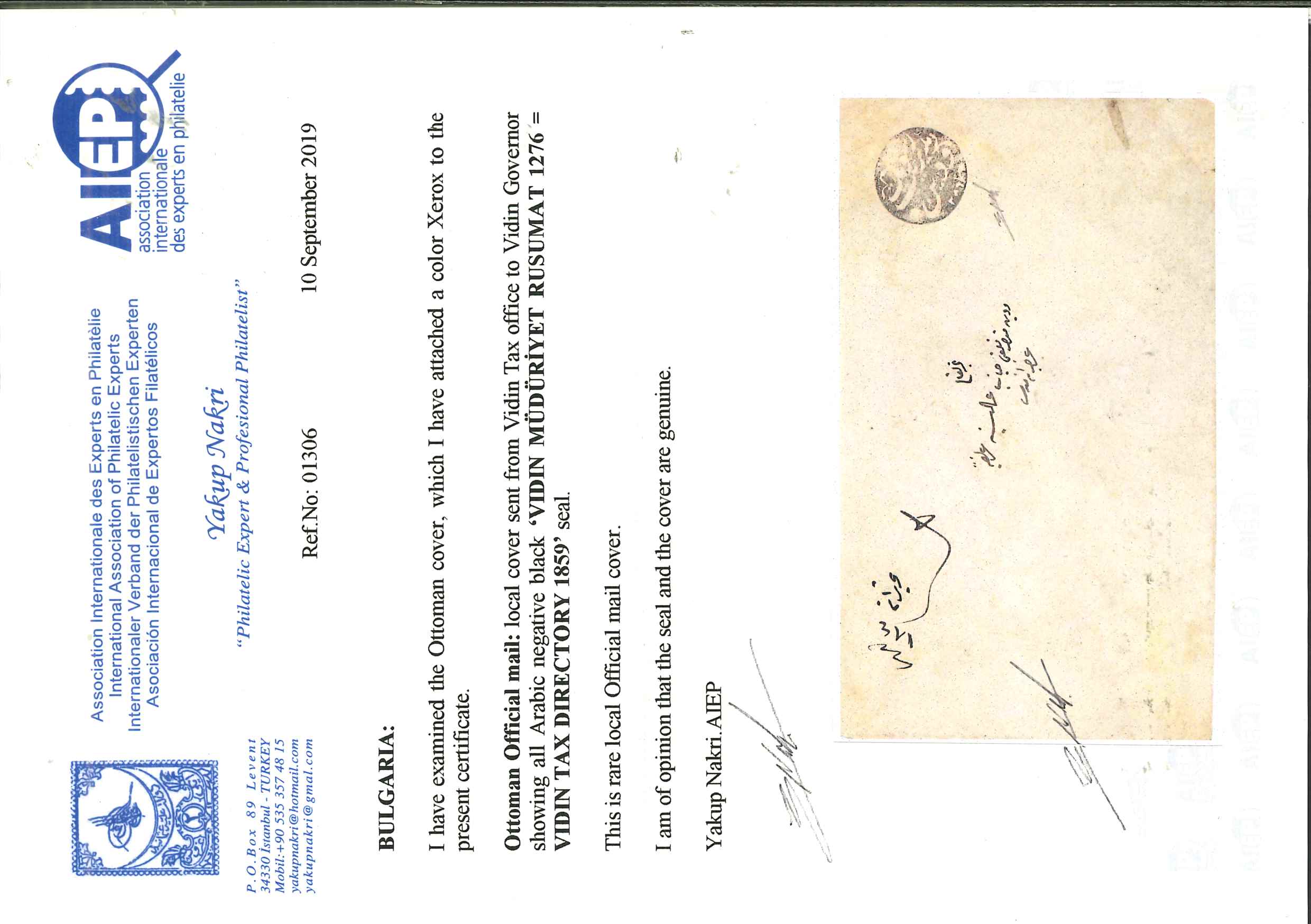 1859, Turkish local post, two letters on exhibition pages, with full analysis. C. 1862 Rustschuk with rare Arabic negative Commercial Court Ruse seal on reverse. Also a official mail local cover with seal of Vidin Tax