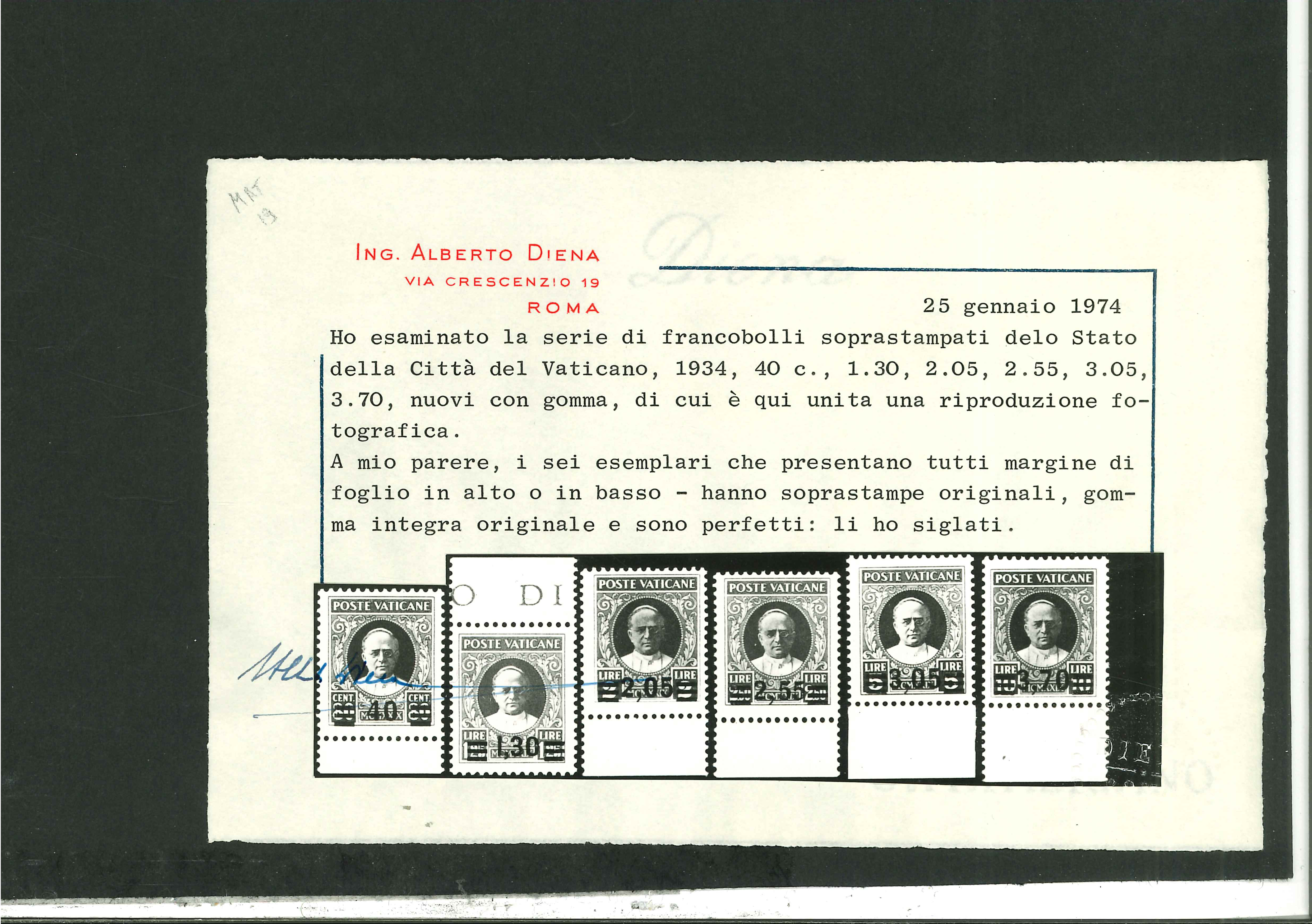 1934 Provisional set of six, mint nh, each with sheet margin, fresh, very fine and scarce in this quality, experts hs, cert. Alberto Diena (1974) (Image 1)