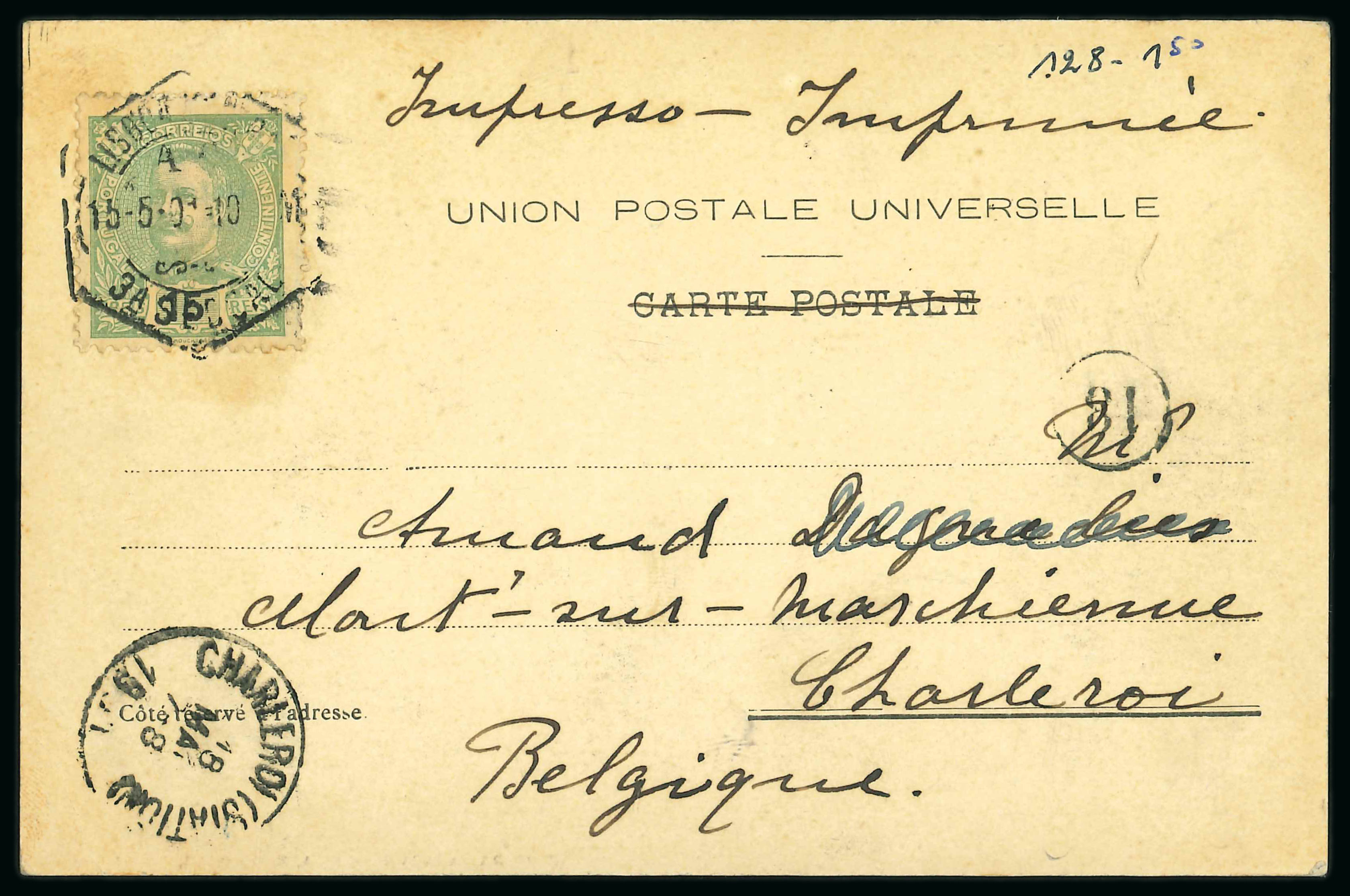 known according to vendor) and two collective proofs in blue with two proofs on King Manuel and one Carlos, a rare group. (Image 1)
