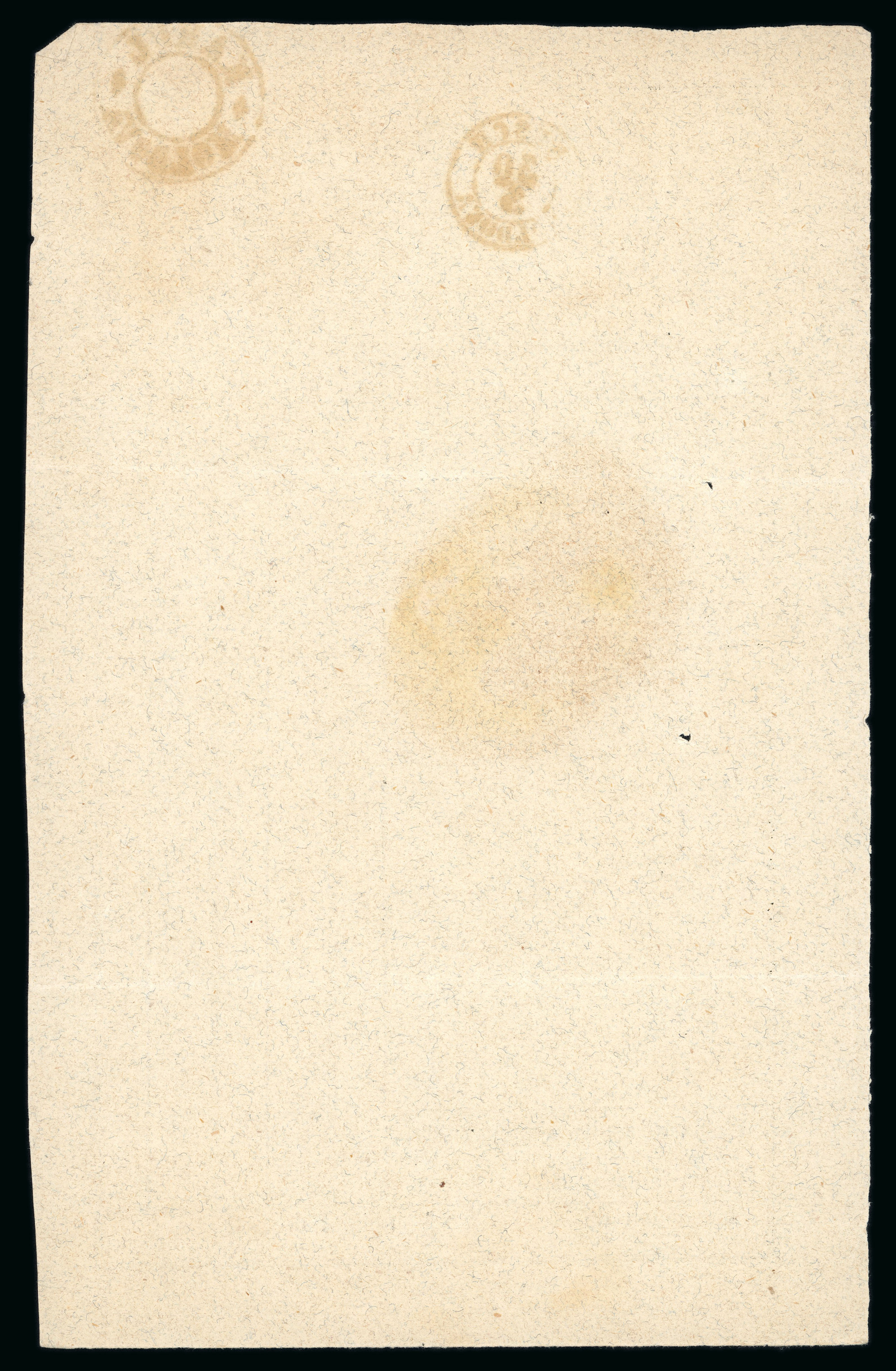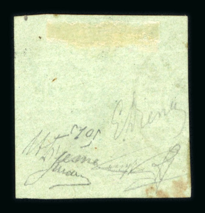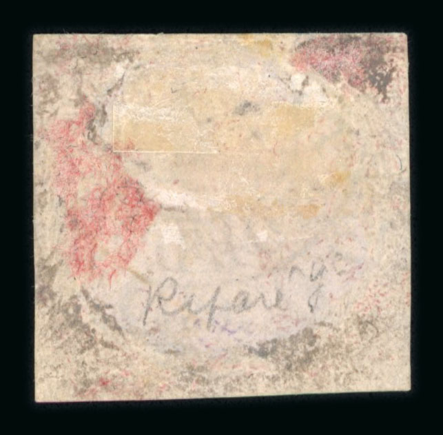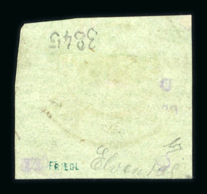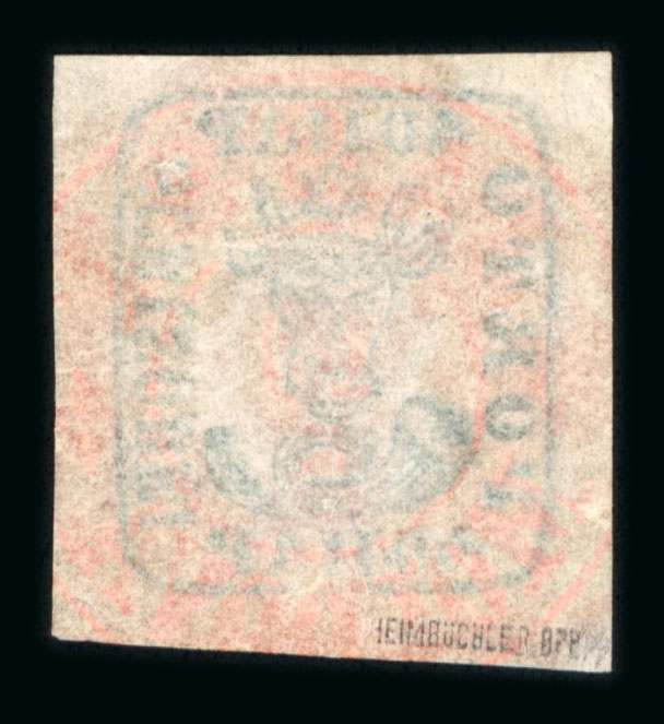 imperfections at extreme edges and a faint trace of horizontal bend; extremely fine & with distinguished provenance. Heimbüchler census 316/1. Ex Rotschild (1948), Amundsen (1969 described "truly a 'Connoisseur's' stamp), Tomasini (D.Feldman 2006).