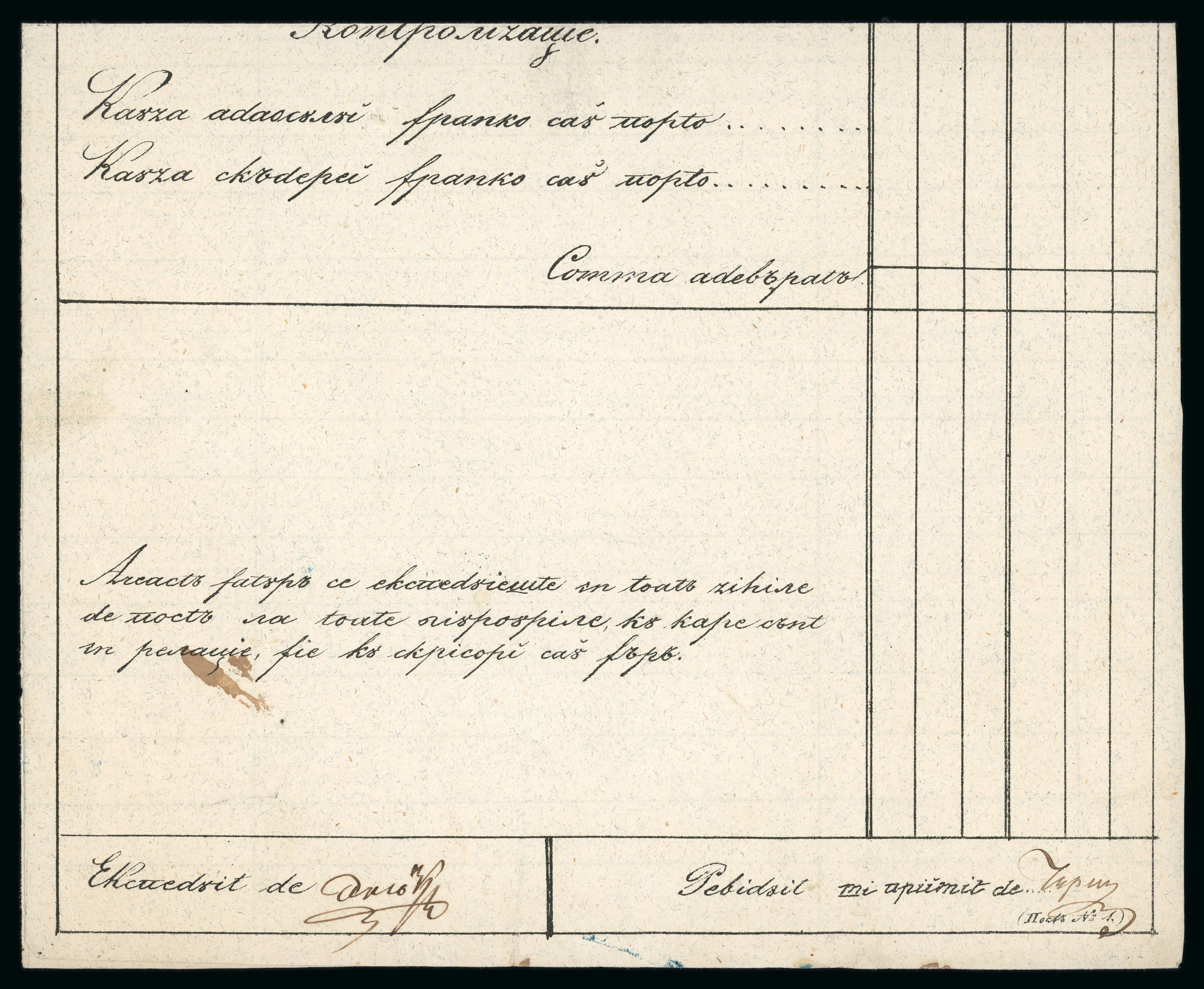 1859-60, two postal documents incl. 1860 (18.11) Waybill in Cyrillic 'Posta Scrisorilor' (postal format No.5) from Galatz to Kahul, showing red GALATZ straight line hs with large double-circle KAHUK/MOLDOVA/20.11 (manuscript date), fine,