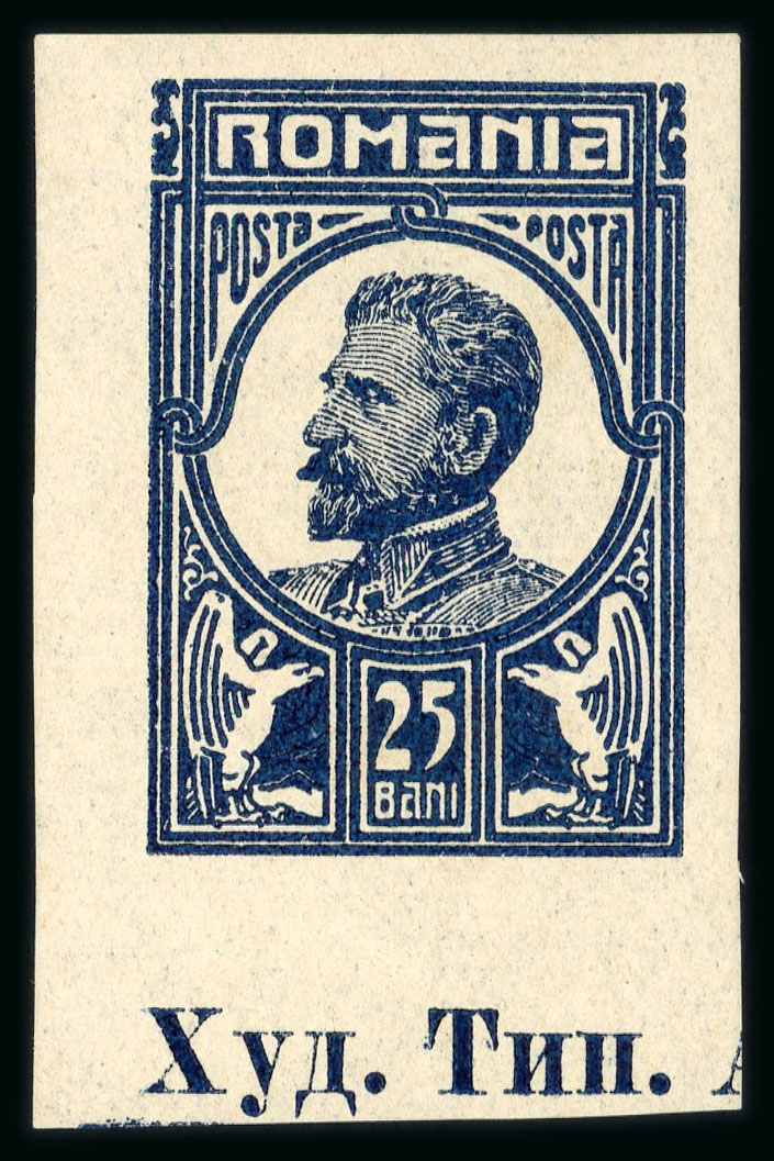 1923 Essay by Waterlow for proposed Airmail Issue, unadopted, imperforate photographic Essay for the 6 lei value, marked "Duplicate" and dated "25th Aug. 1923" in ink; lettered "C" at top left, with pencil manuscript "Original retouched".