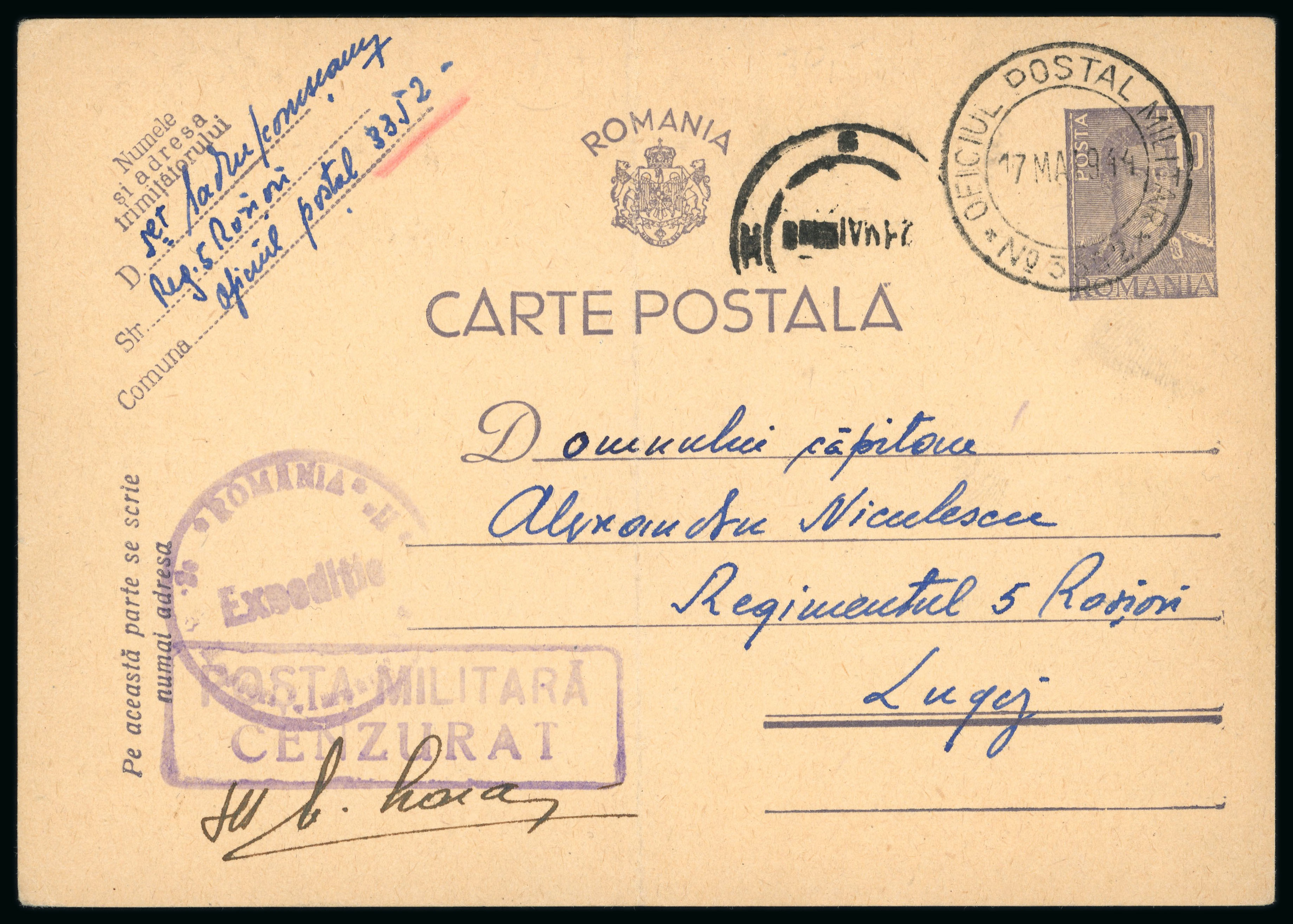 Bucharest-Galati-Ismail-Cetatea Alba bearing the special round marking in blue. Generally fine condition. (Image 1)