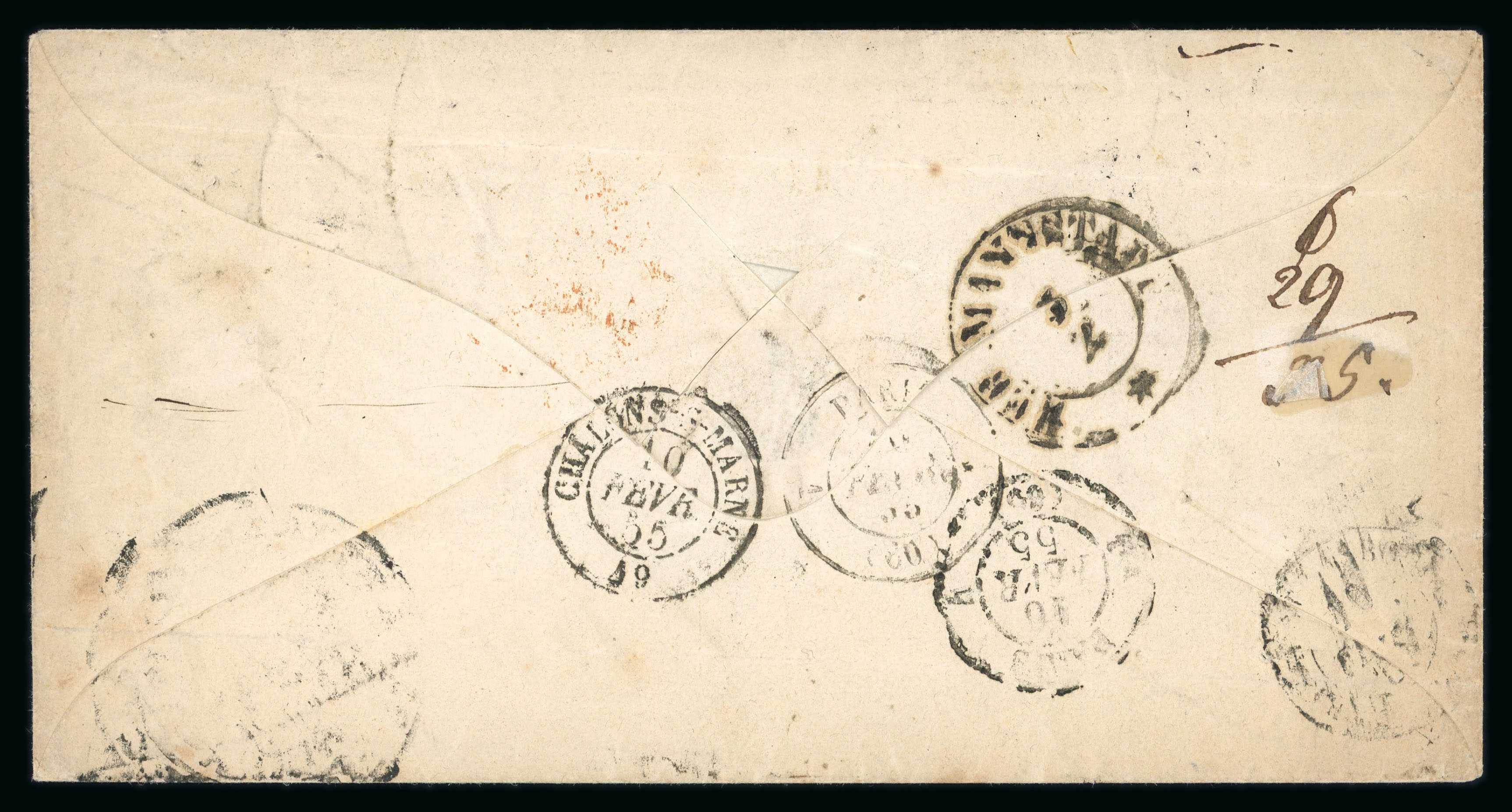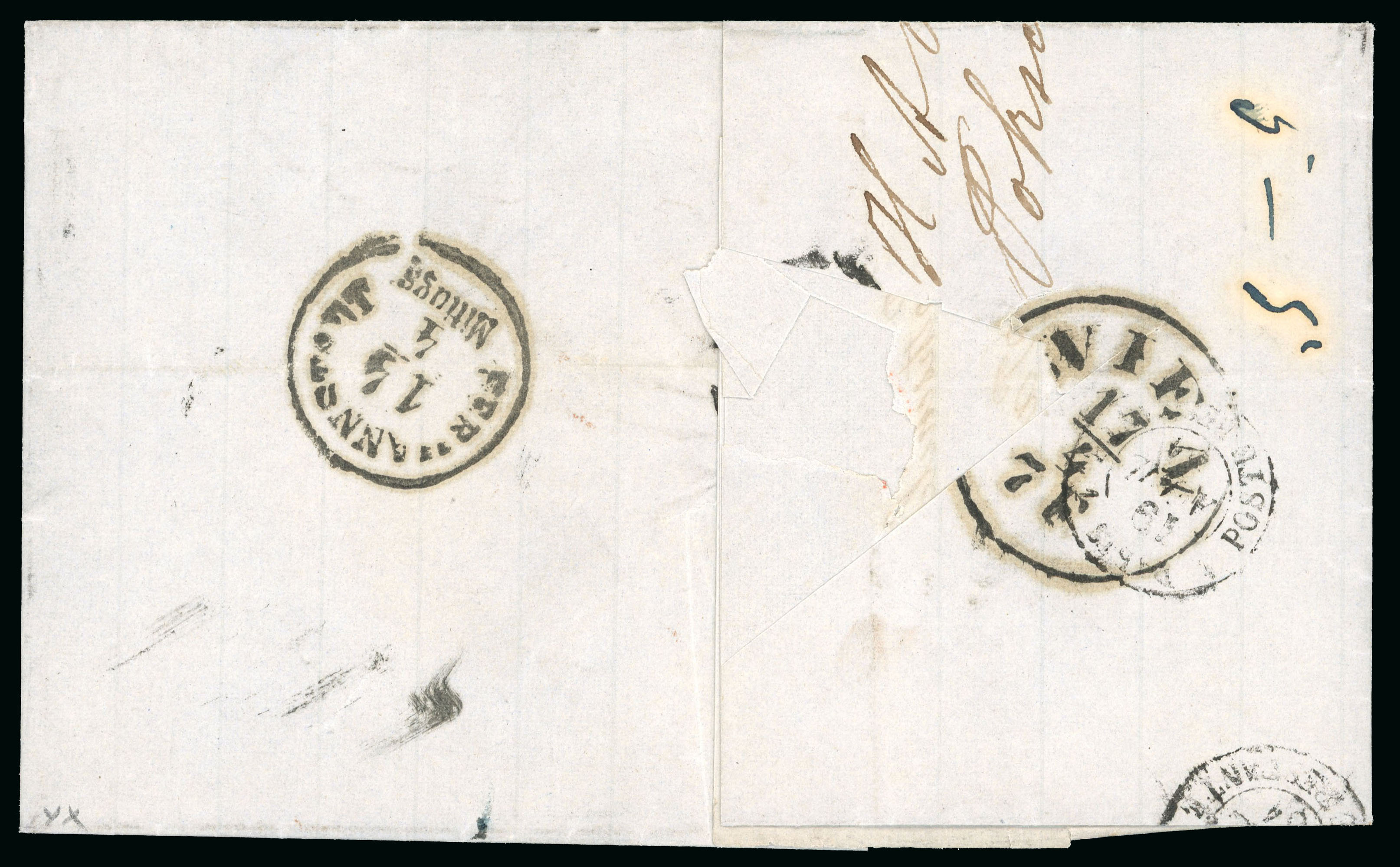 cds in black (Tchilinghirian Fig. 727), arrival on 2/10. Unfortunately missing a small part of the back flap together with the registration stamp -however a very fine looking front, with a scarce postmark. (Image 1)