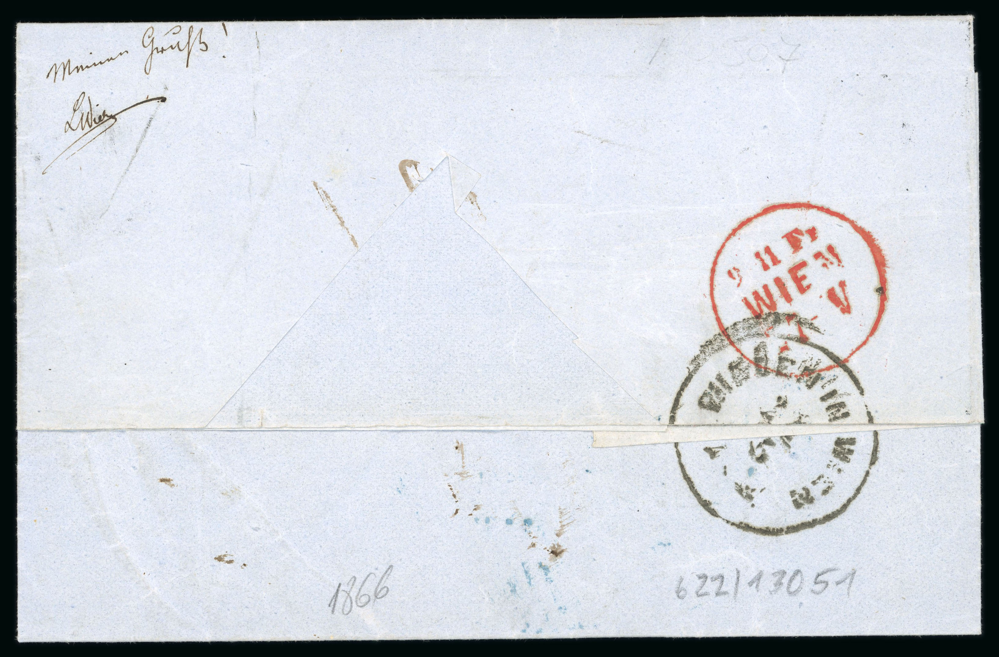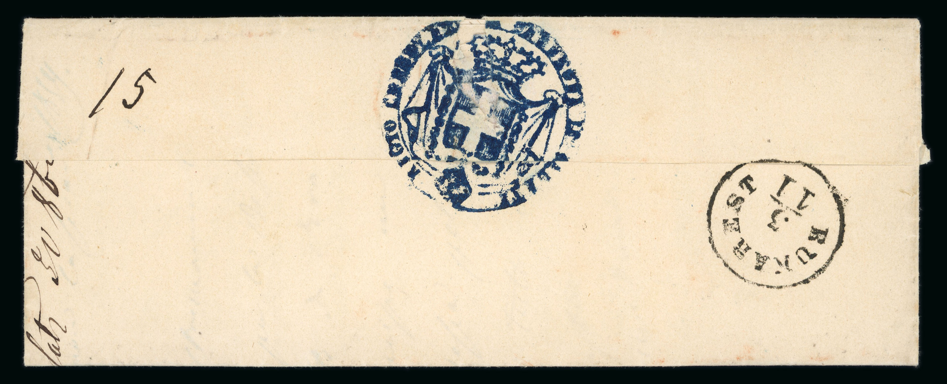 Austrian Consular Post in Romania (Wallachia, Levant): Entire letter to Vienna with superb strike of circular 'BUCAREST / Früh' cds from 14/5 (1862) struck in black (Tchilinghirian fig. 717), rated '25' in manuscript with Vienna arrival