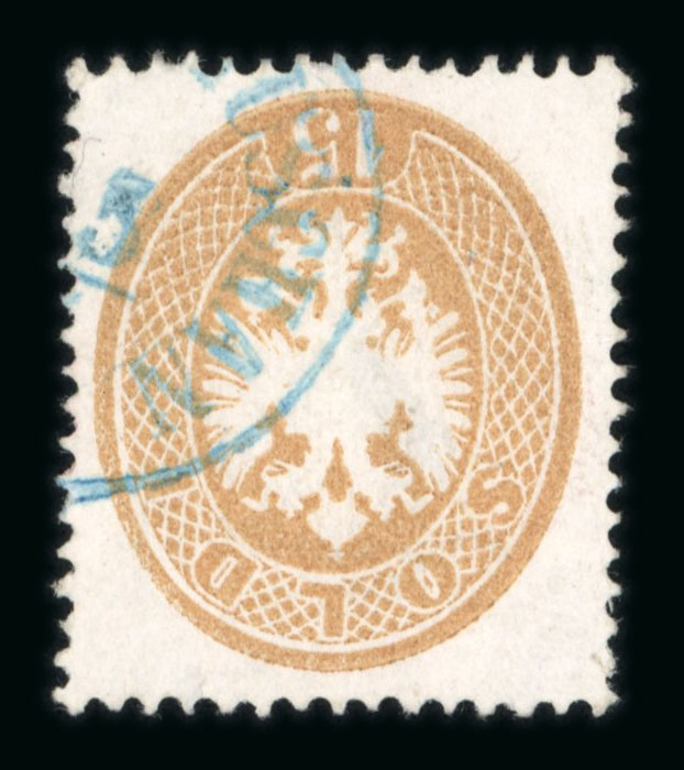 FOKSCHAN: 1864 10s. blue cancelled by a fragment of FOKSCHAN consular post in blue. Scarce, very fine condition. (Image 1)