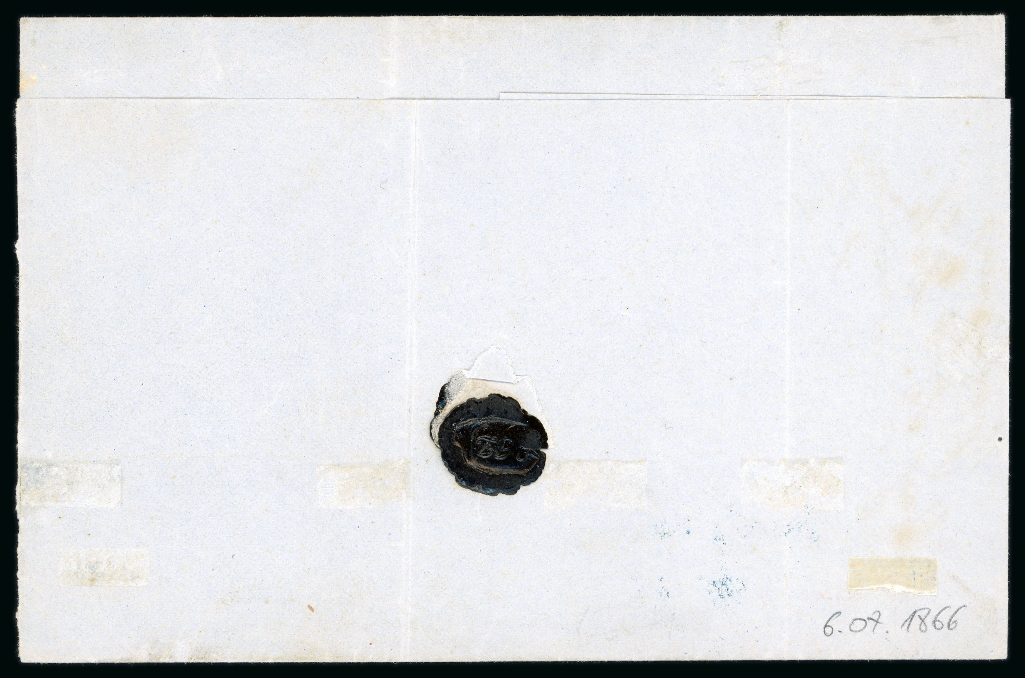 mail in Romania after 31/3/1869 according to the treaty with Austria, but "clandestine" mail still existed. Some toning and a file fold, but a fine, scarce and unusual cover. Opinion Ferchenbauer (1994). (Image 1)