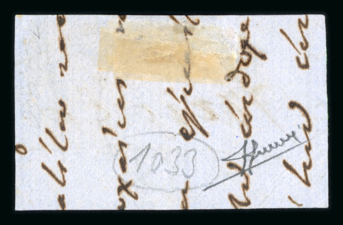 April 1864), the later bearing France 1867 40c orange (2) tied by "5087" large number lozenge in blue with framed "PD" and fair "IBRAILA / VALACHIE" pearled cds in blue (19 June 1869). Some imperfections but an extremely rare pair; ex Michael Sacher,