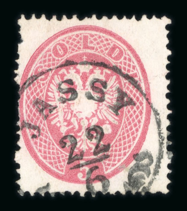 JASSY: Lot containing one 5s. of the 1863 Issue and 5s., a pair of 10s. and 15s. of the 1864 Issue, cancelled with the Austrian consular postmark from Iasi in black and blue. Nice clear strikes, very fine condition. (Image 1)