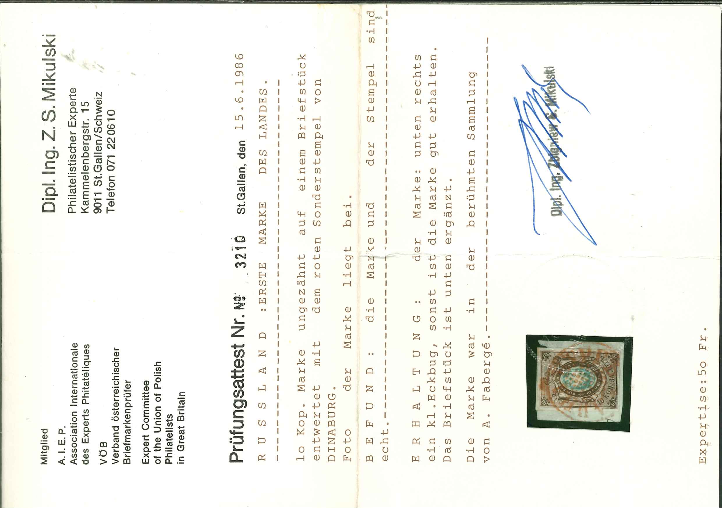 piece, the stamp remaining in good condition. Ex Fabergé, Mikulski Cert (1986). (Image 1)