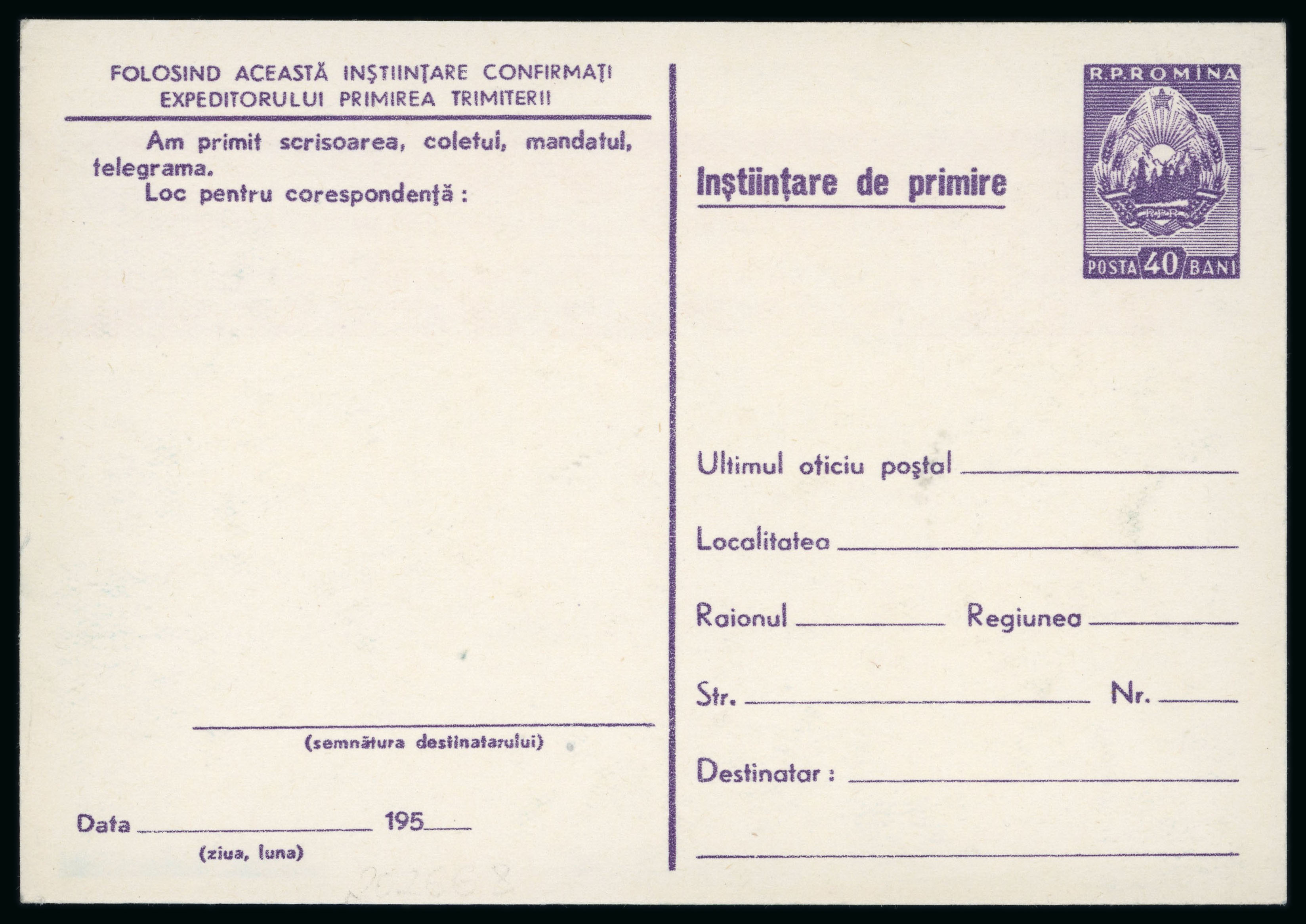 1956-1960s lot of 20 confirmation of receipt stationery postcards of the People's Republic depicting images from different towns, used and unused, but condition from poor to fine as well as 1960s group of 28 stationery business card