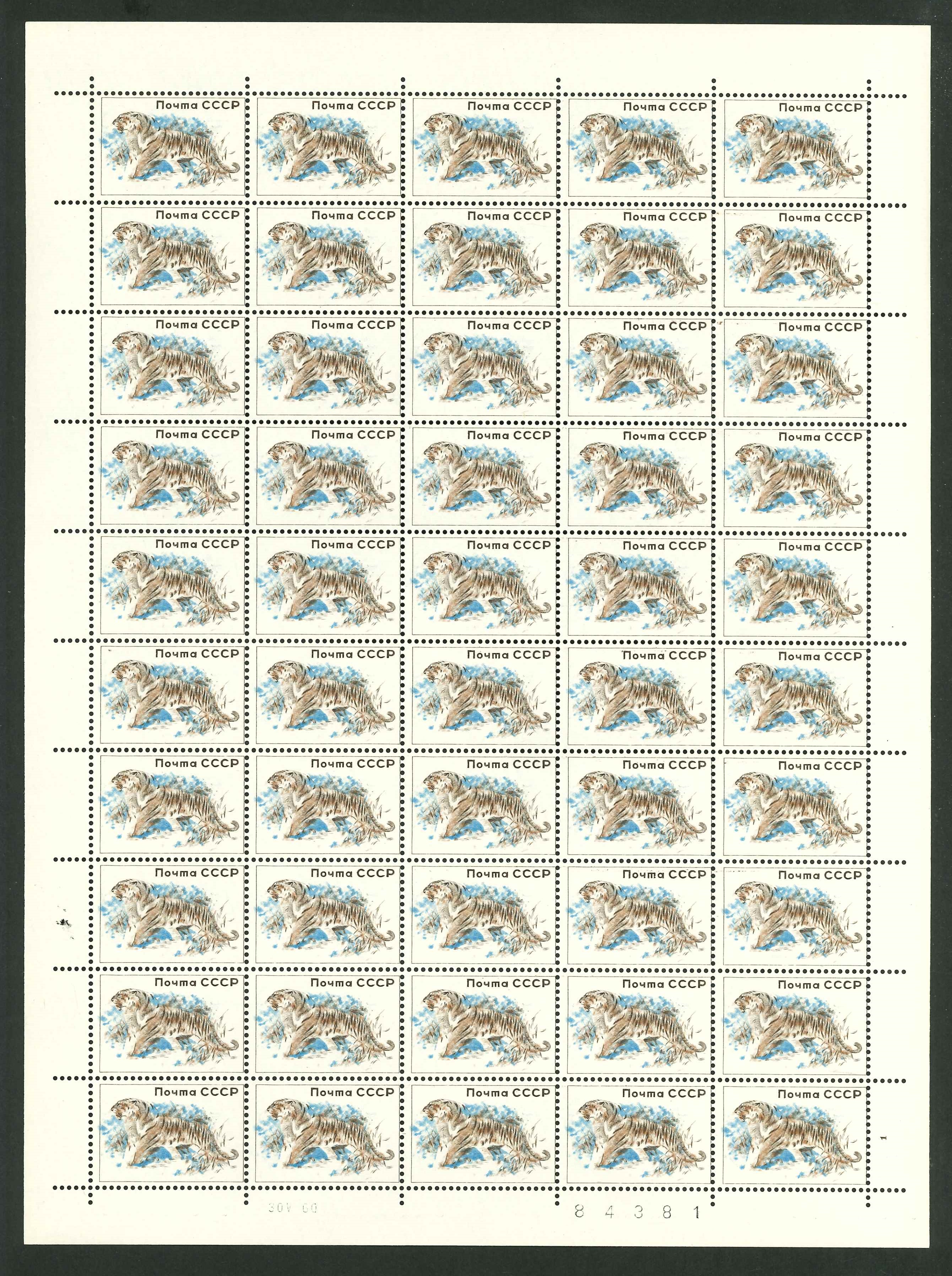 1960, Russia Tiger, 3 complete mint n.h. proof sheets showing different stages of printing between 9.5-30.5.1960. (Image 1)