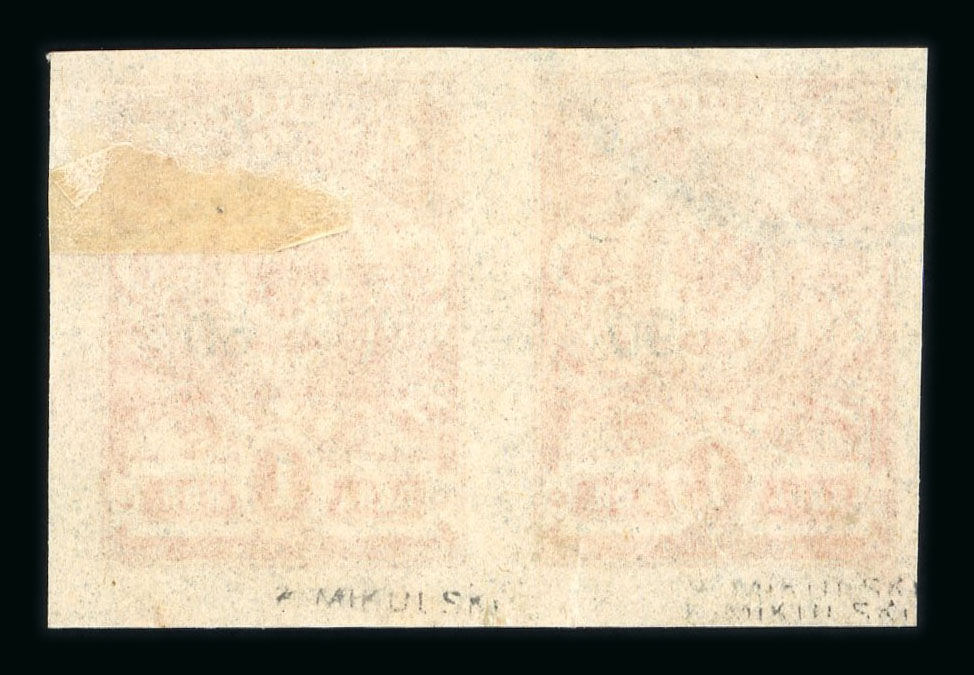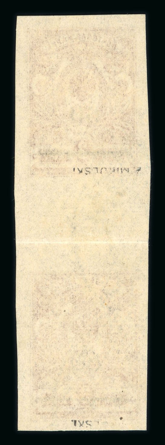 Sochi: 1918 60(k) on 1k imperf. mint pair showing type II and X, hinged in margin only, light vertical fold along right margin clear of the stamp, very fine; signed Mikulski. (Image 1)