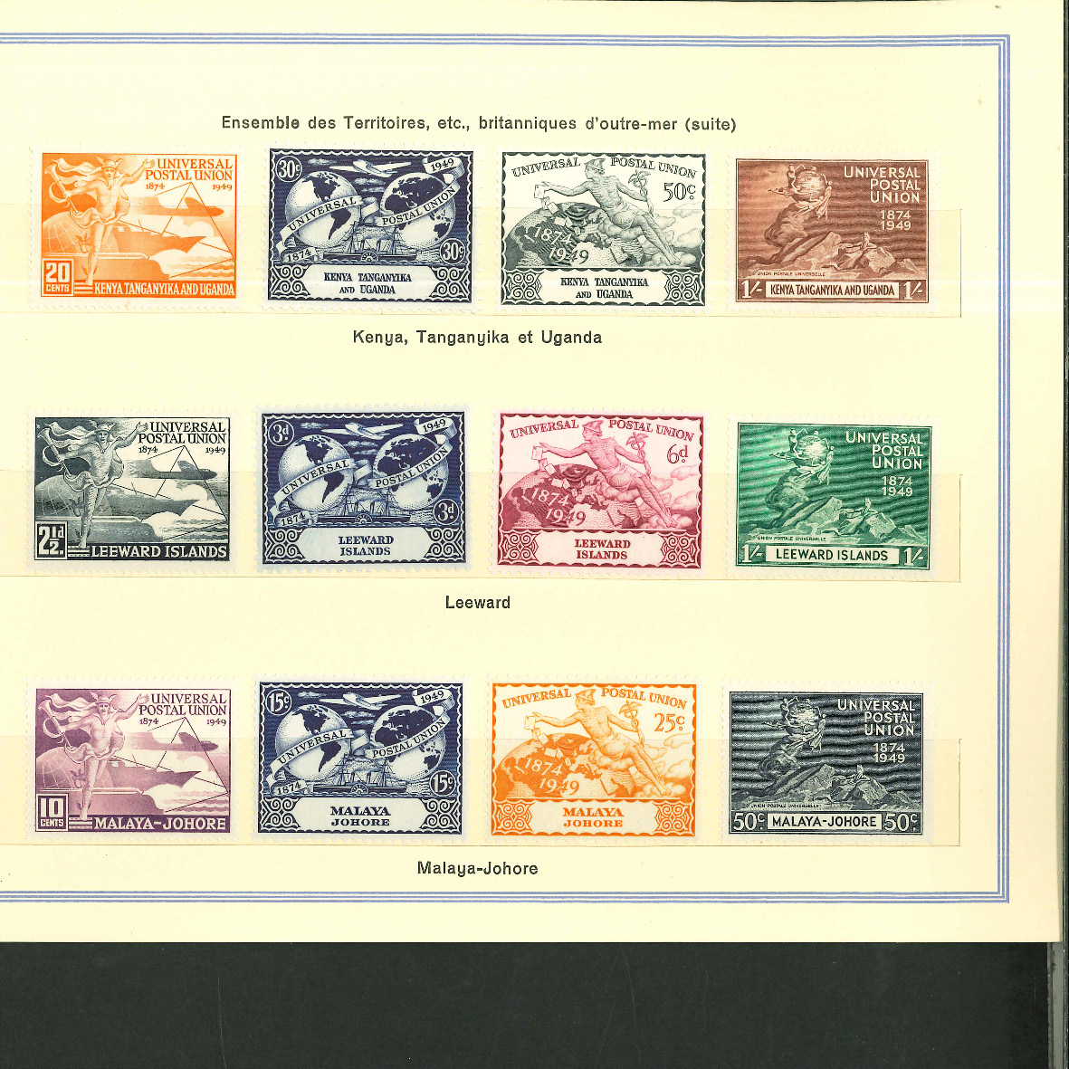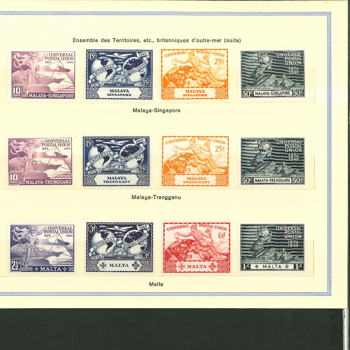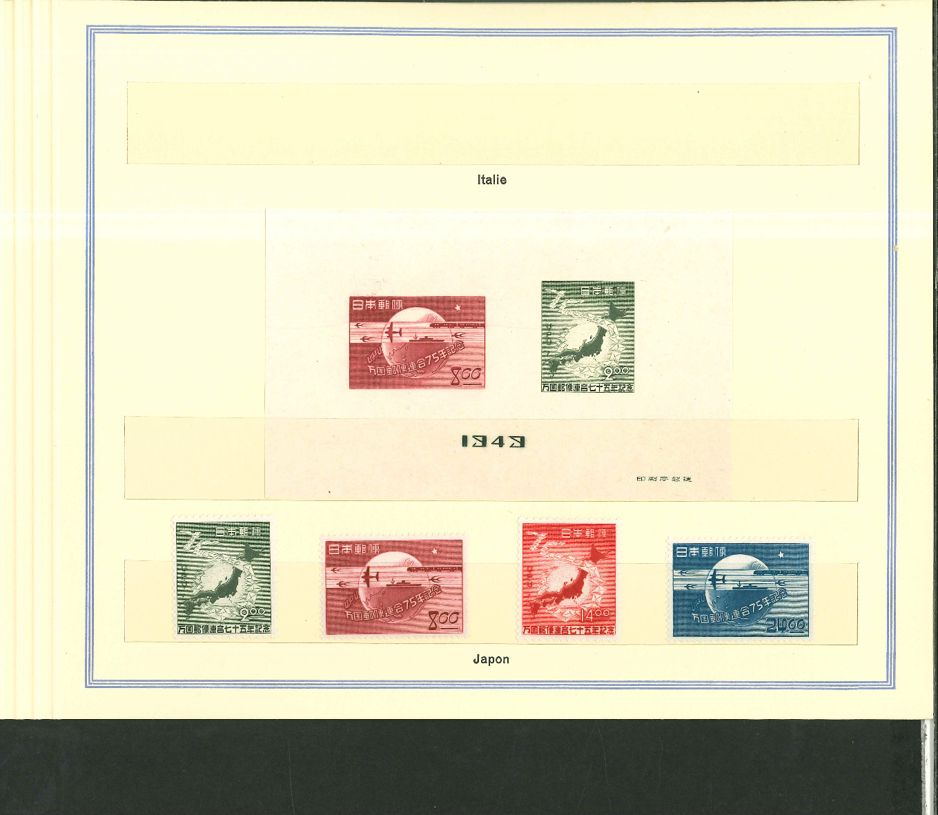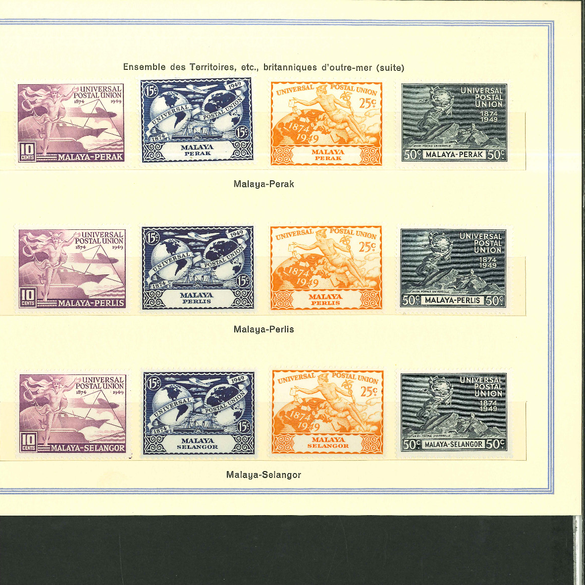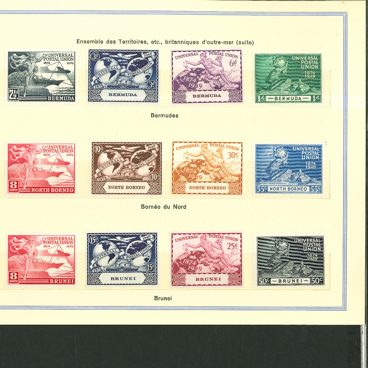 1950, UPU Bern special book 75th anniversary Including Omnibus series Commonwealth and all other Colony series and expensive sets such as Berlin Stephan 1949 with rare plate fault 40 VII "R closed", newly