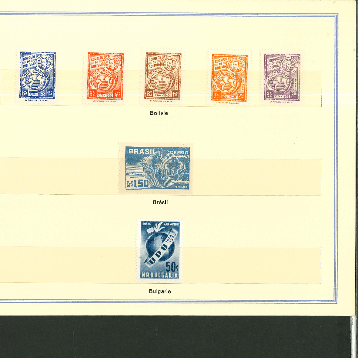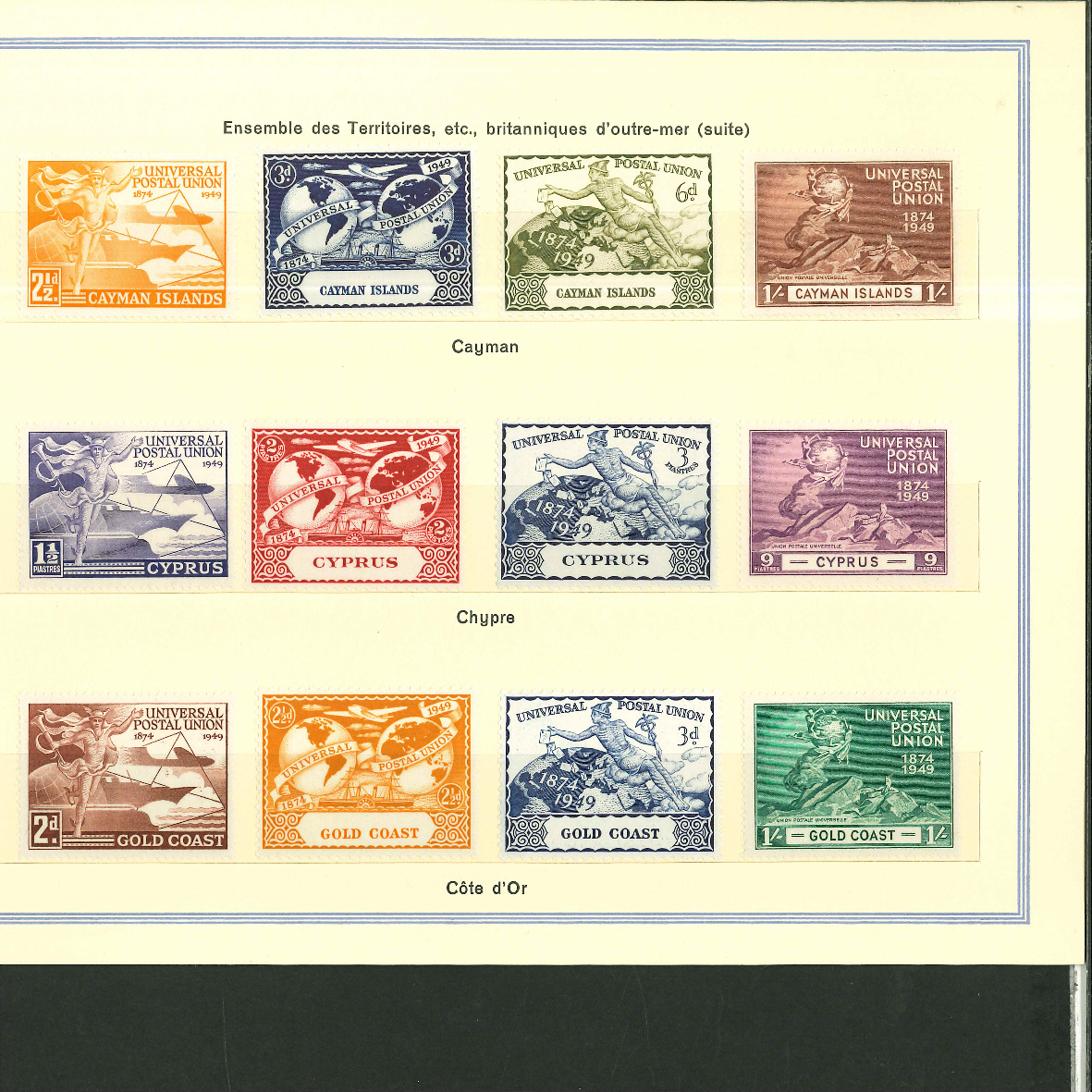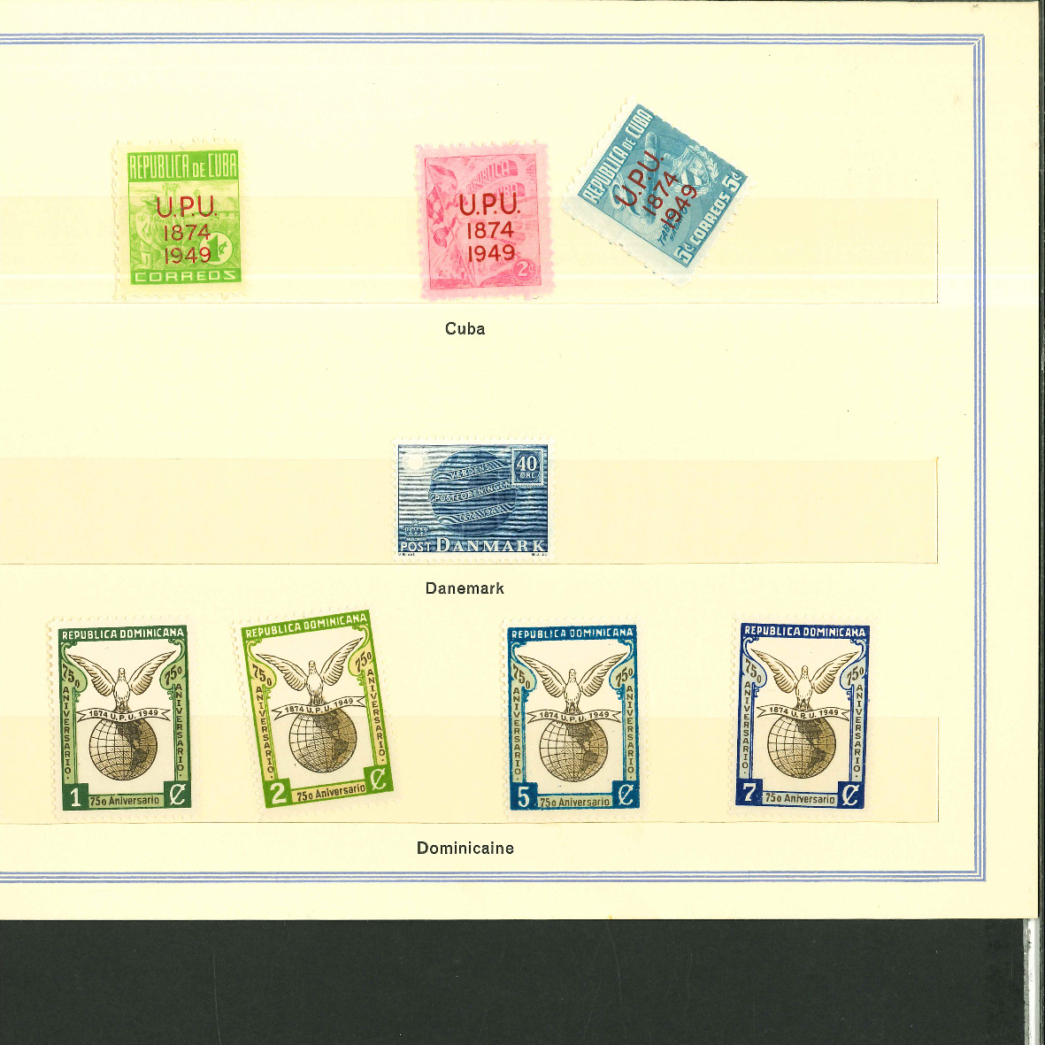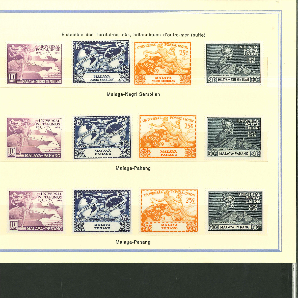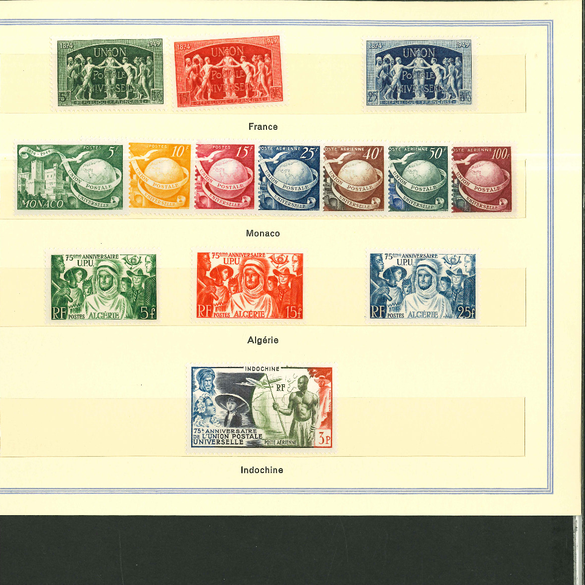 1950, UPU Bern special book 75th anniversary Including Omnibus series Commonwealth and all other Colony series and expensive sets such as Berlin Stephan 1949 with rare plate fault 40 VII "R closed", newly