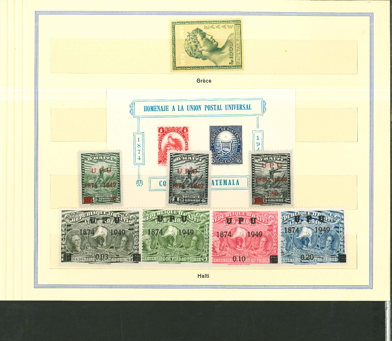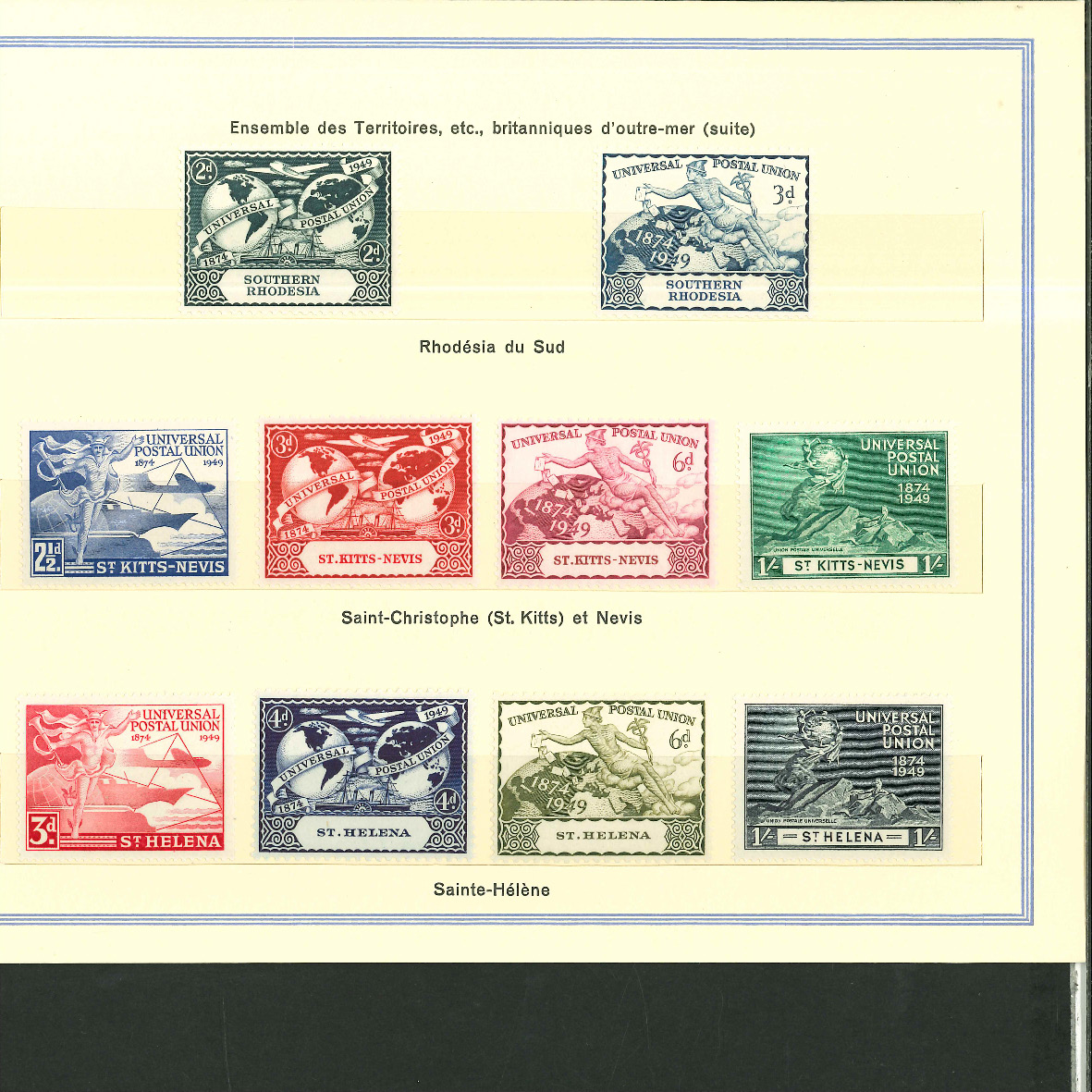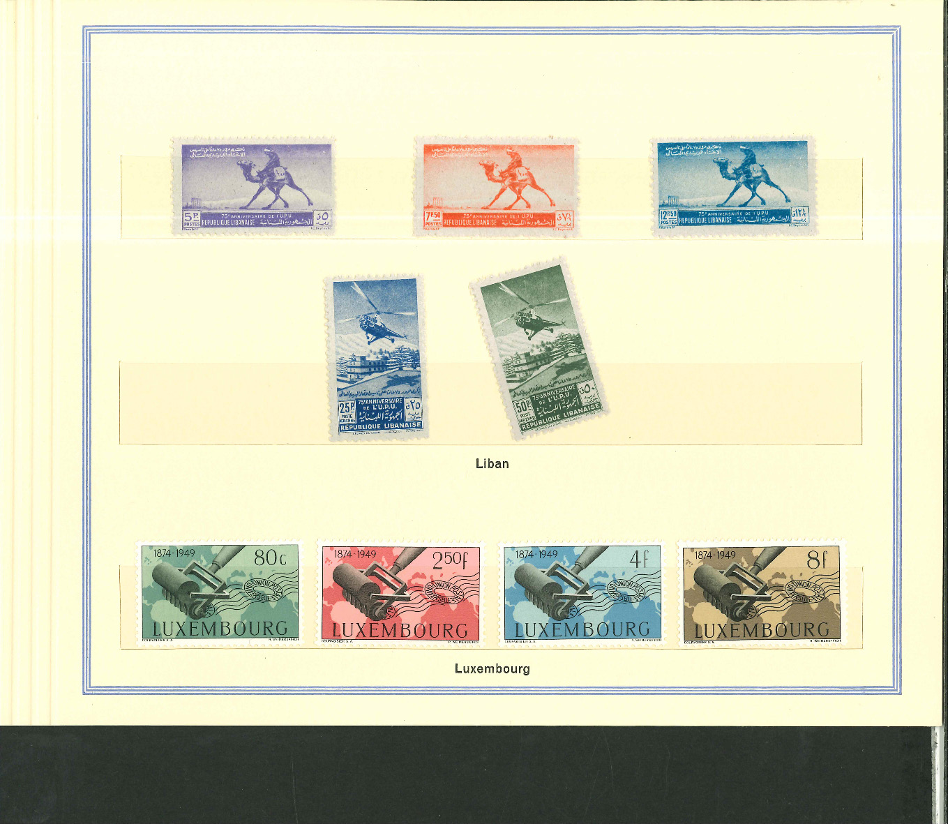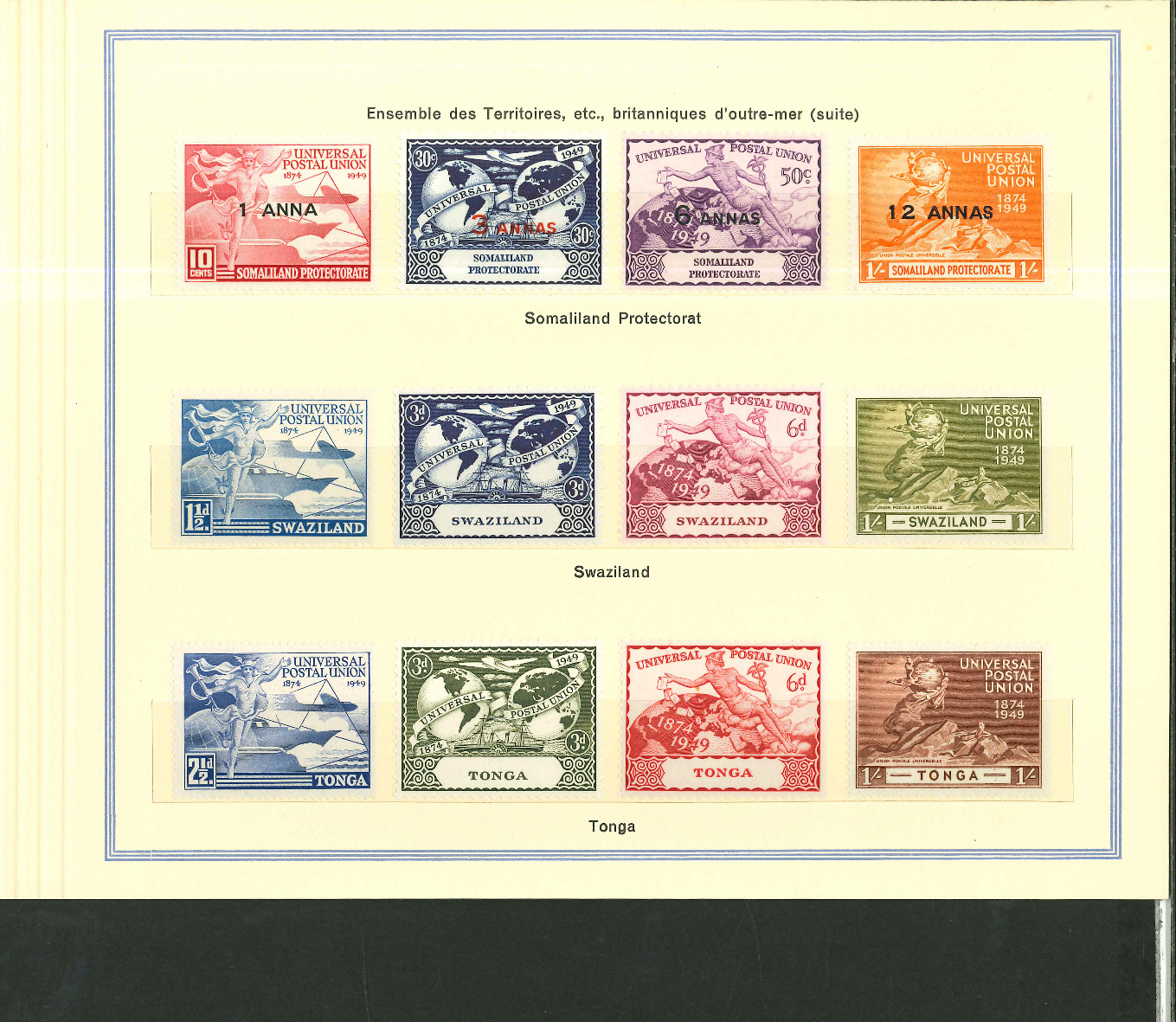 1950, UPU Bern special book 75th anniversary Including Omnibus series Commonwealth and all other Colony series and expensive sets such as Berlin Stephan 1949 with rare plate fault 40 VII "R closed", newly