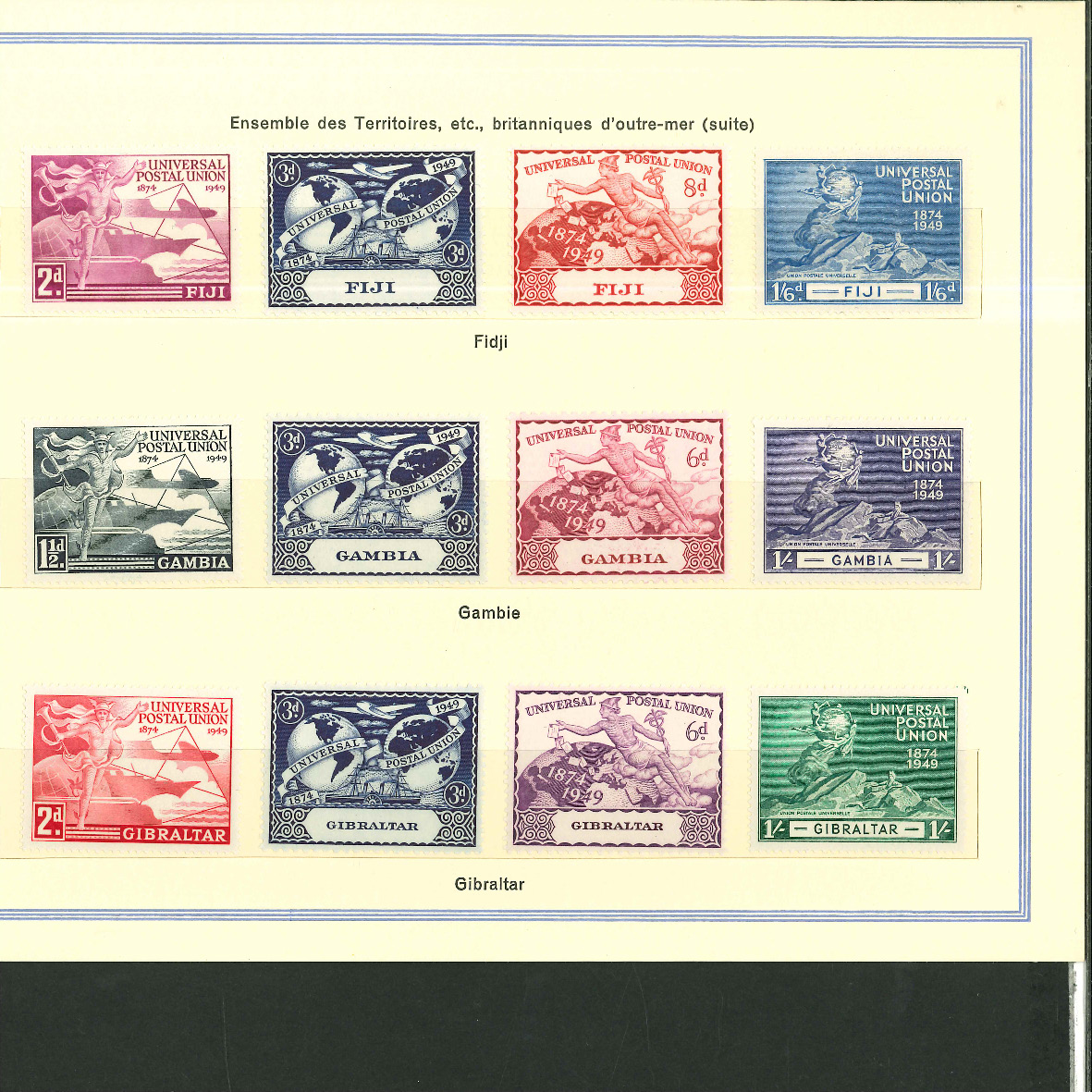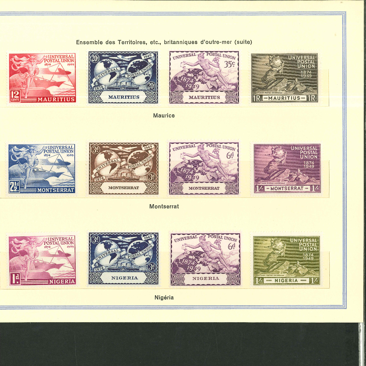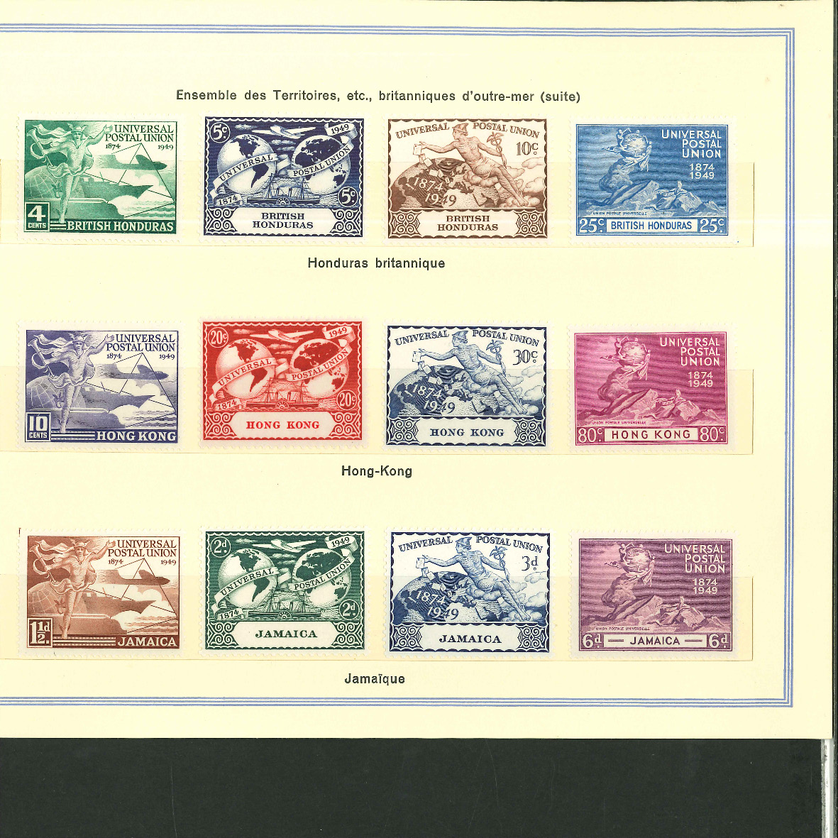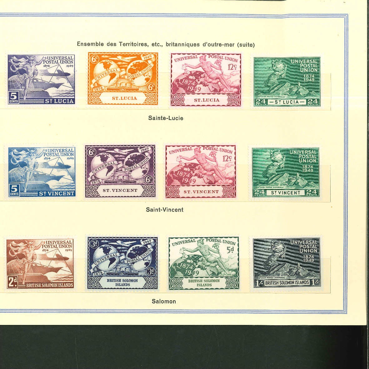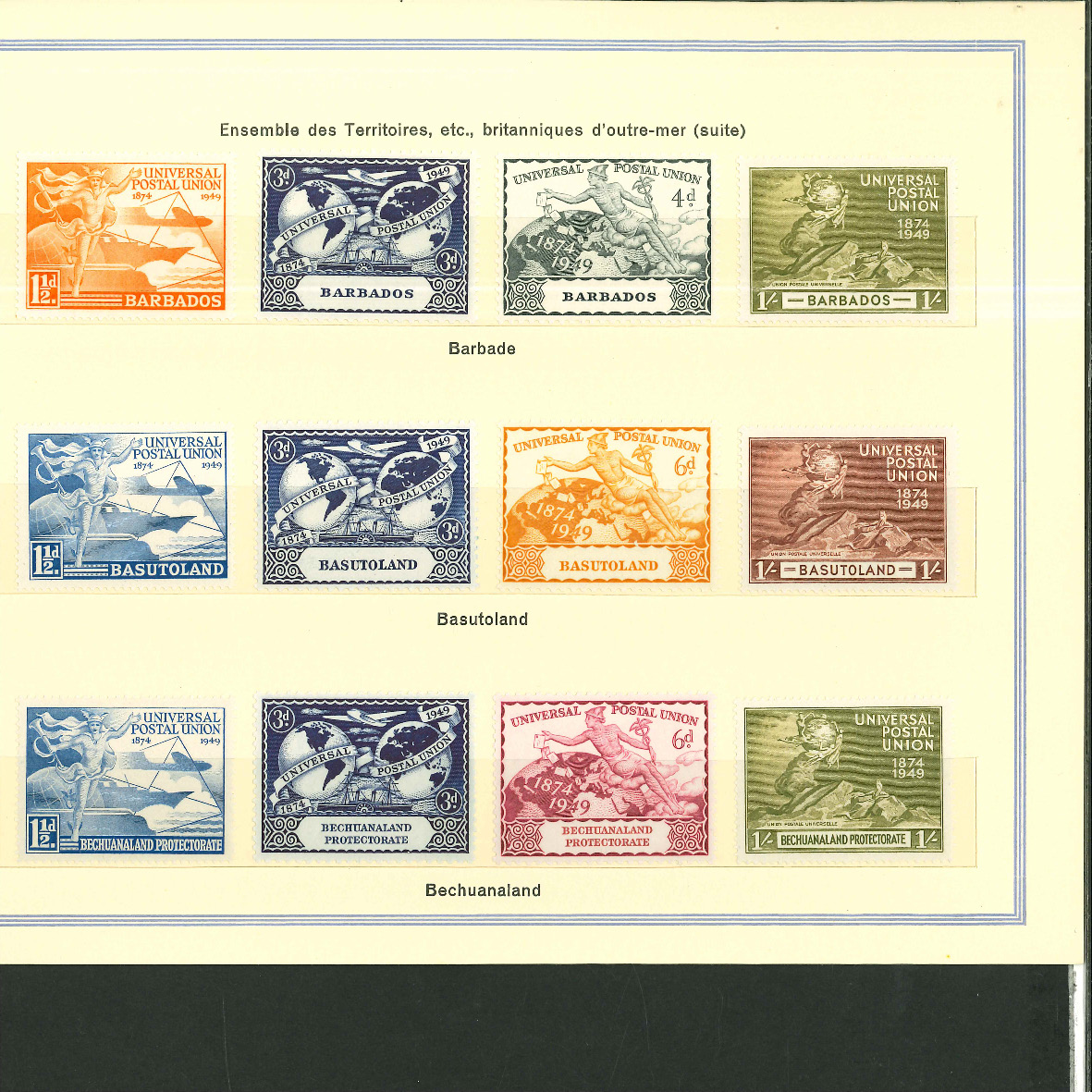 1950, UPU Bern special book 75th anniversary Including Omnibus series Commonwealth and all other Colony series and expensive sets such as Berlin Stephan 1949 with rare plate fault 40 VII "R closed", newly