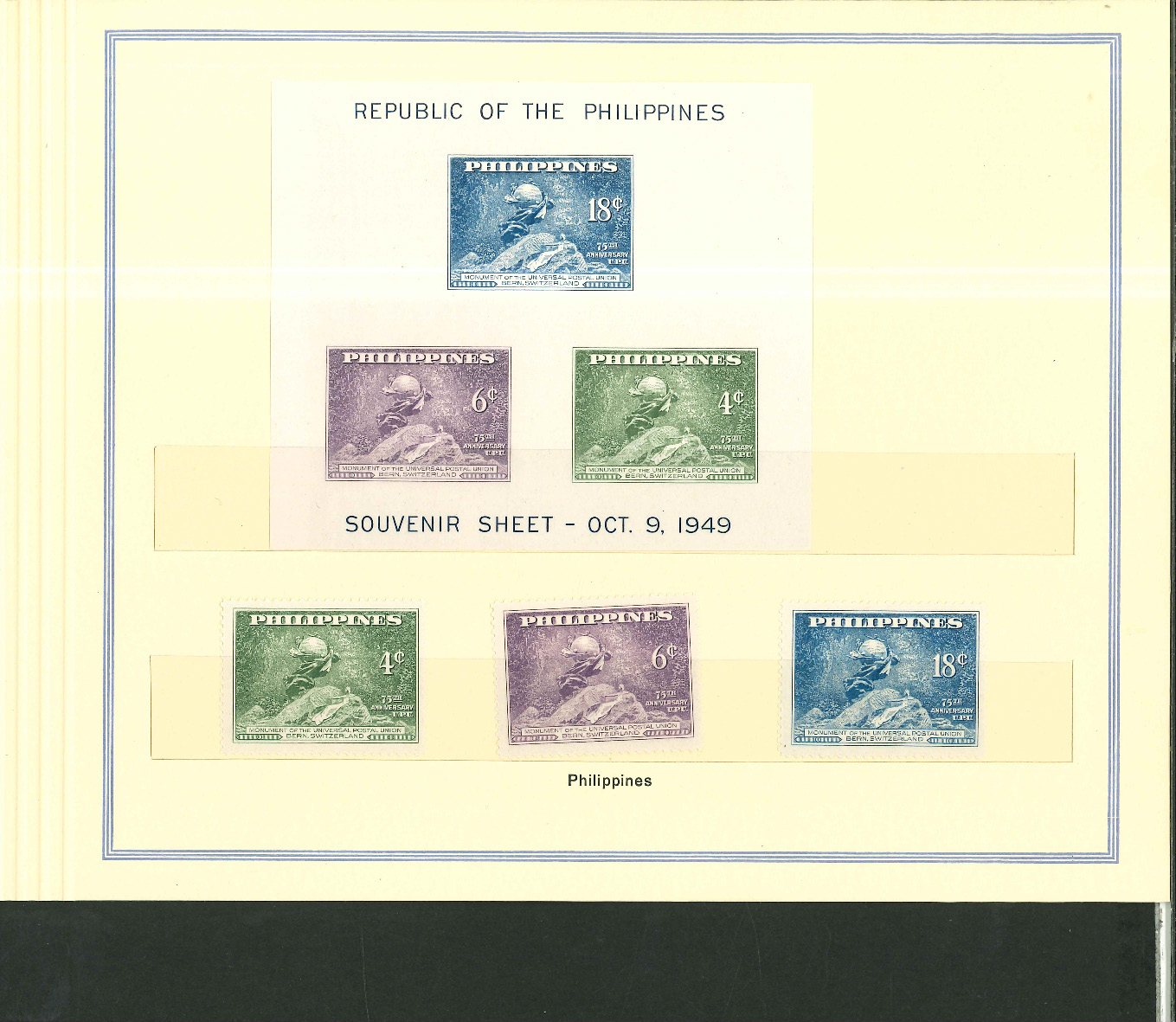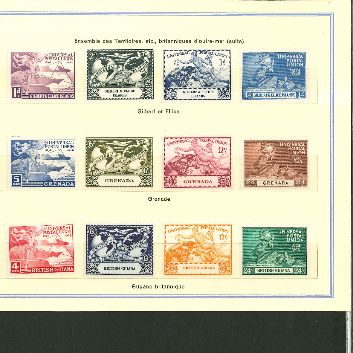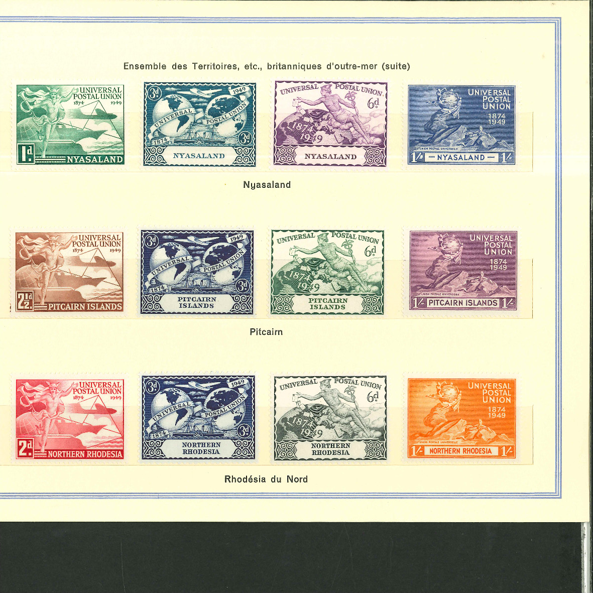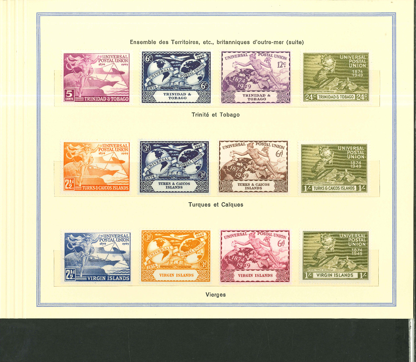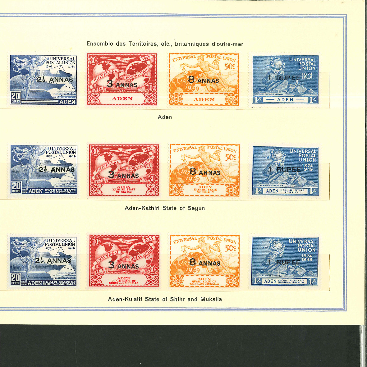 1950, UPU Bern special book 75th anniversary Including Omnibus series Commonwealth and all other Colony series and expensive sets such as Berlin Stephan 1949 with rare plate fault 40 VII "R closed", newly