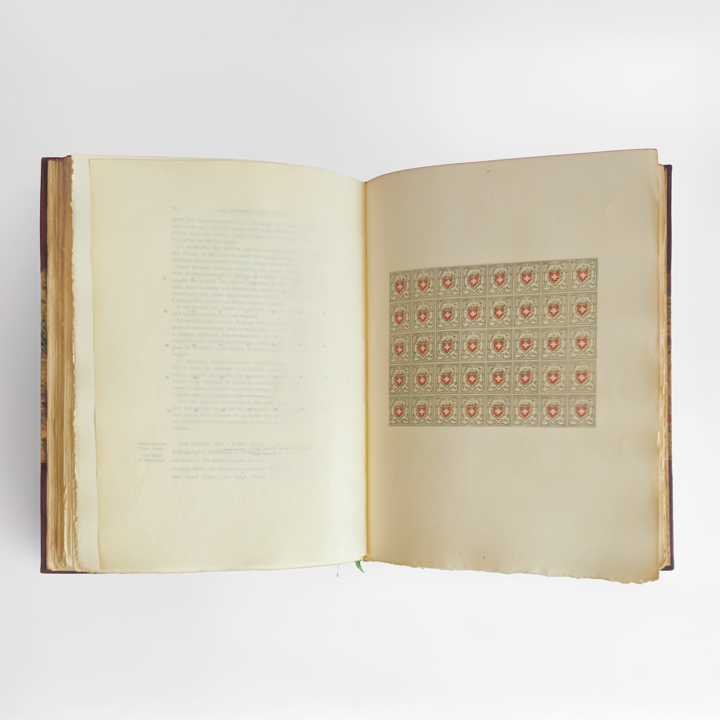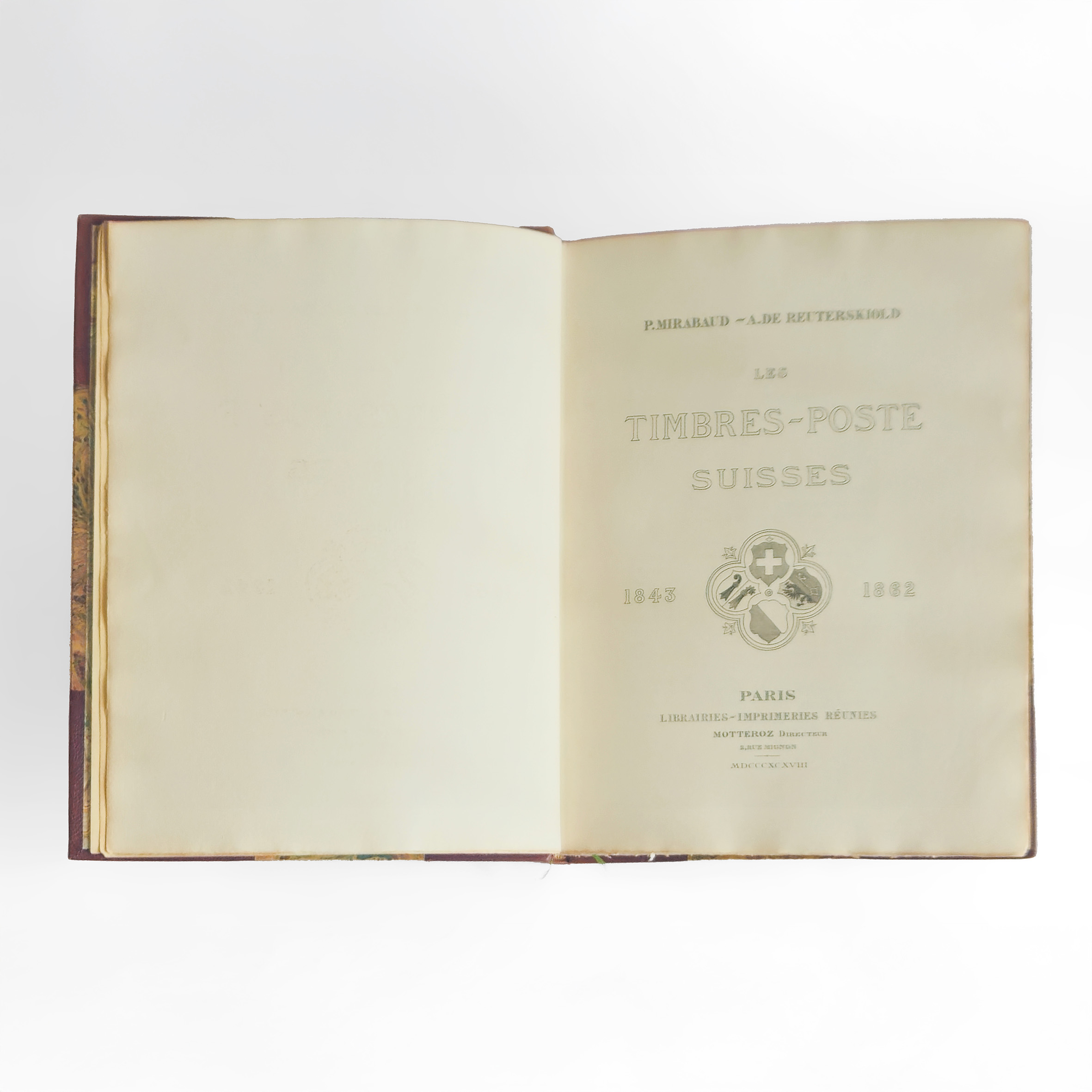 1898, « LES TIMBRES-POSTE SUISSE » von P. Mirabeau und A. De Reuterskjöld, Nummer 144 von 200 auf Französisch. Herrlich erhaltenes Exemplar dieses ikonischen Werks der Schweizer Philatelie, mit allen Farbtafeln. Alles völlig tadellos