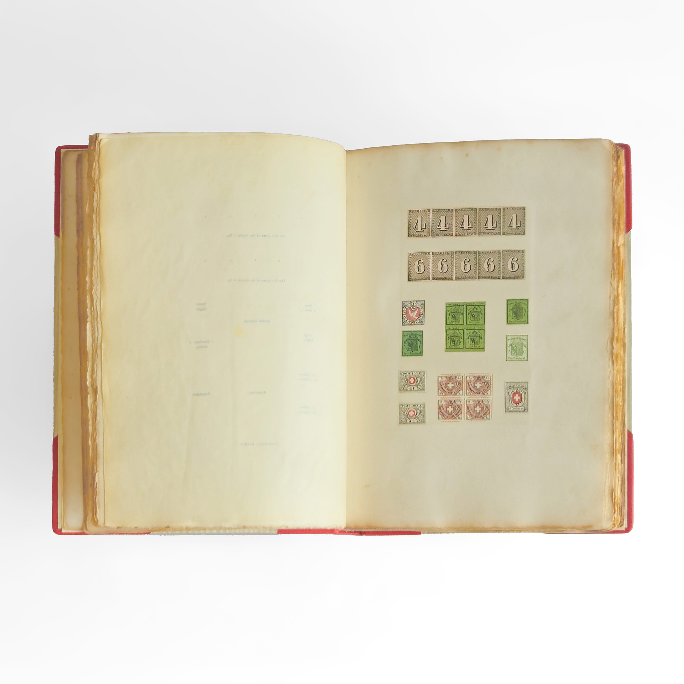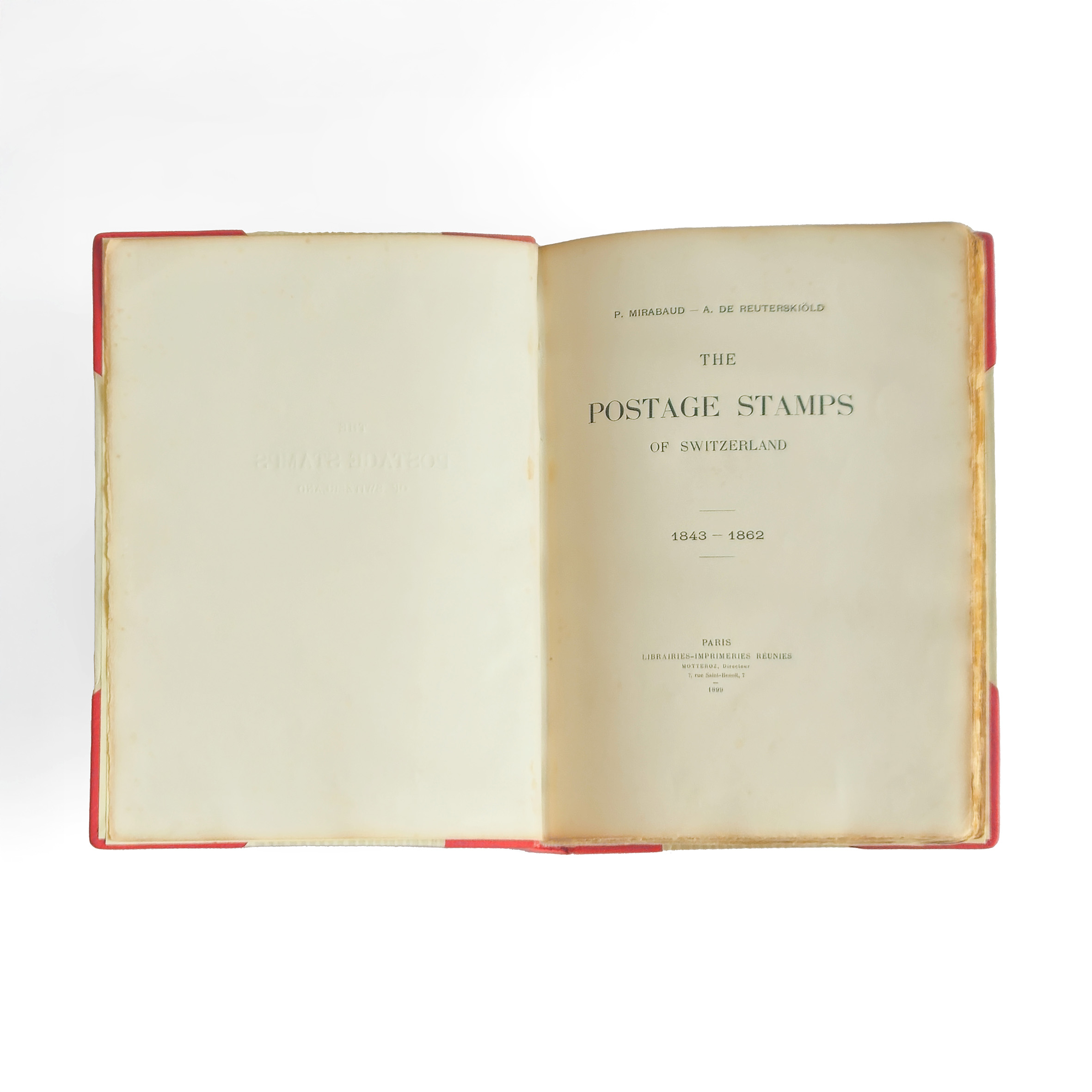 1899, « THE POSTAGE STAMPS OF SWITZERLAND 1843-1862 », von P. Mirabeau und A. de Reuterskjöld, komplettes Buch, Nummer 115 von 150 auf Englisch. Ein sehr schönes Exemplar dieser seltenen Einheit, Halbleder-Einband, mit allen Farbtafeln.