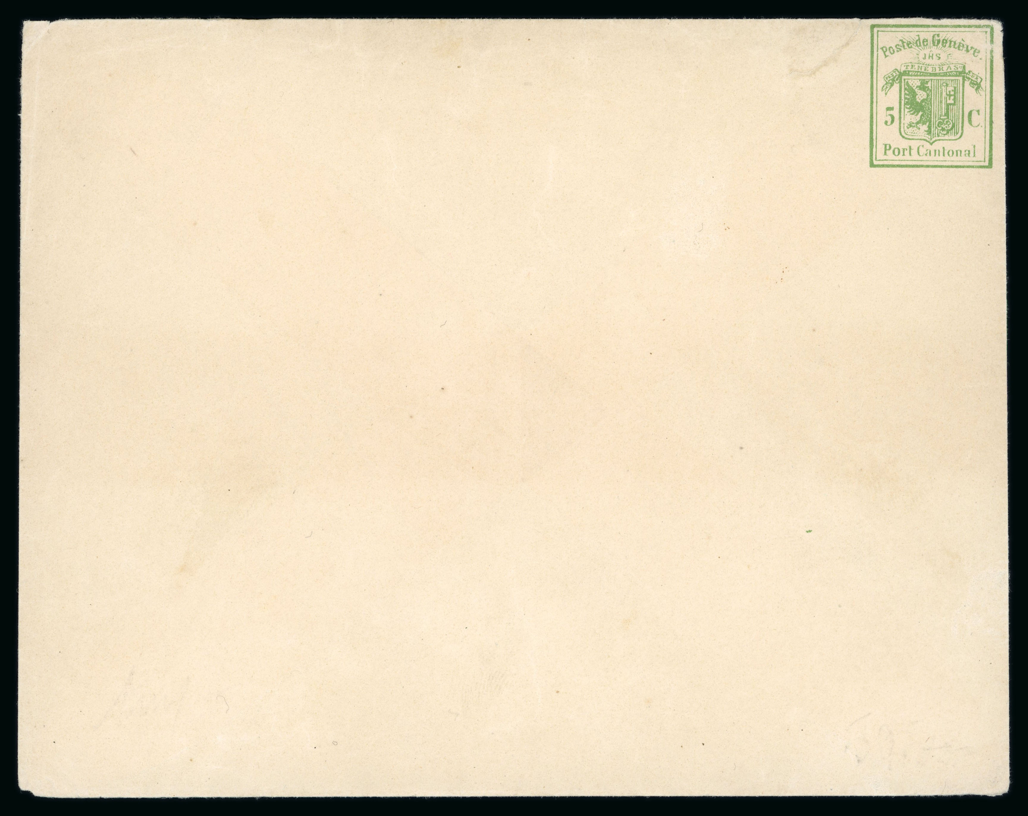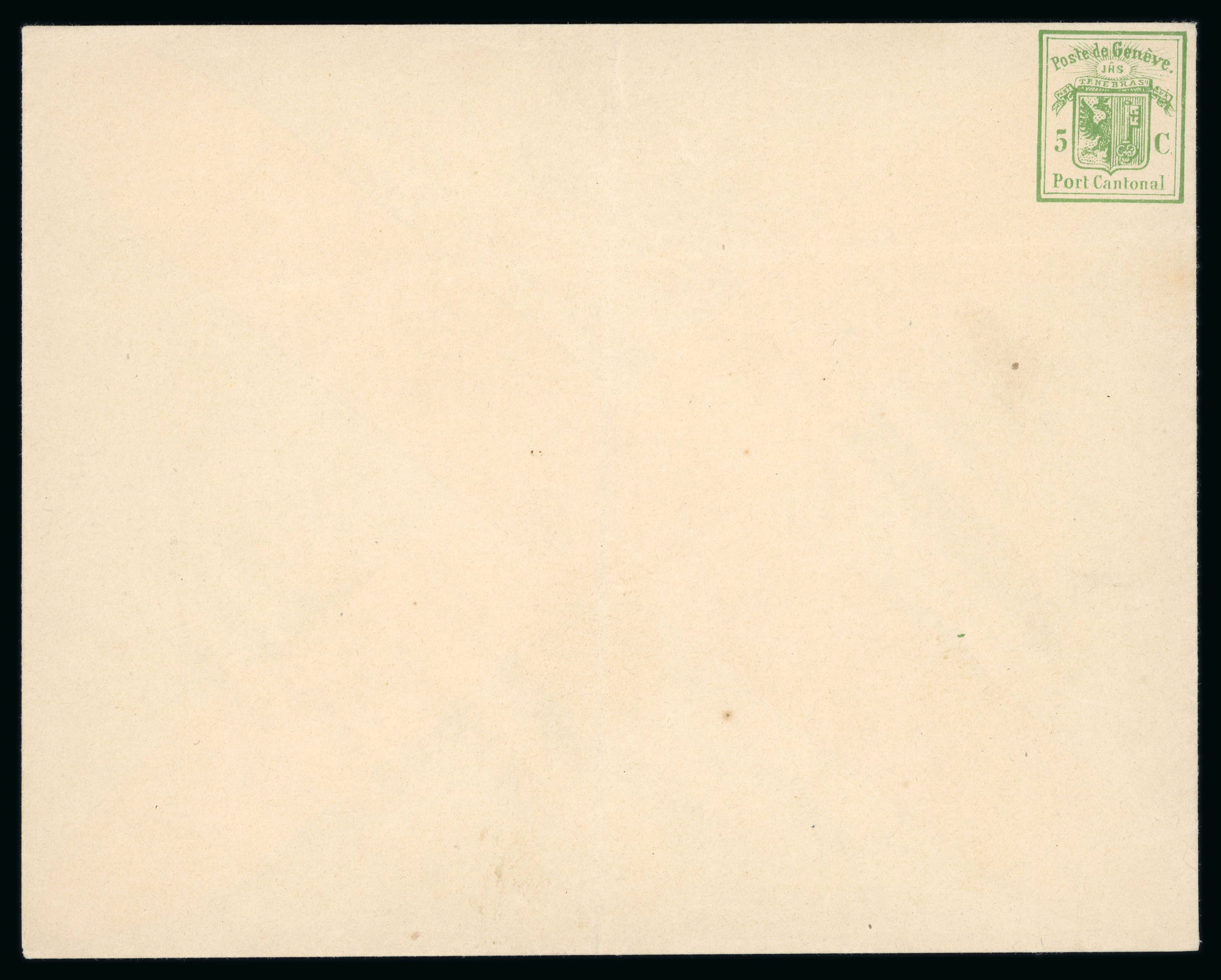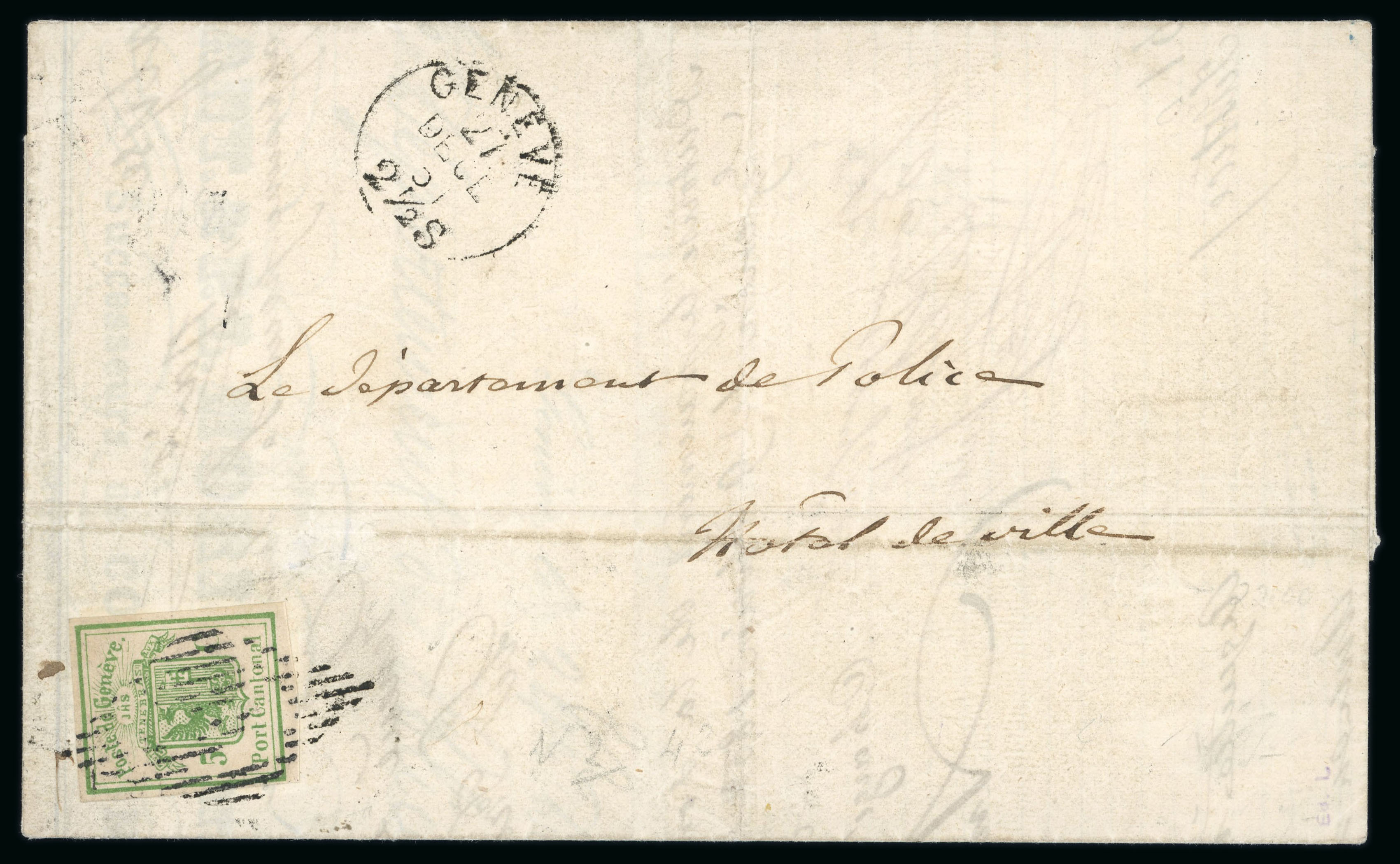nicht häufige Entwertung, wovon R. Schäfer nur 14 kennt, sowie eine extrem seltene Verwendung eines Genfer Ganzsachenausschnittes während der markenlosen Zeit; es soll nur ein weiterer Brief existieren. Atteste Eichele 2018, Marchand 2025. SBK = CHF