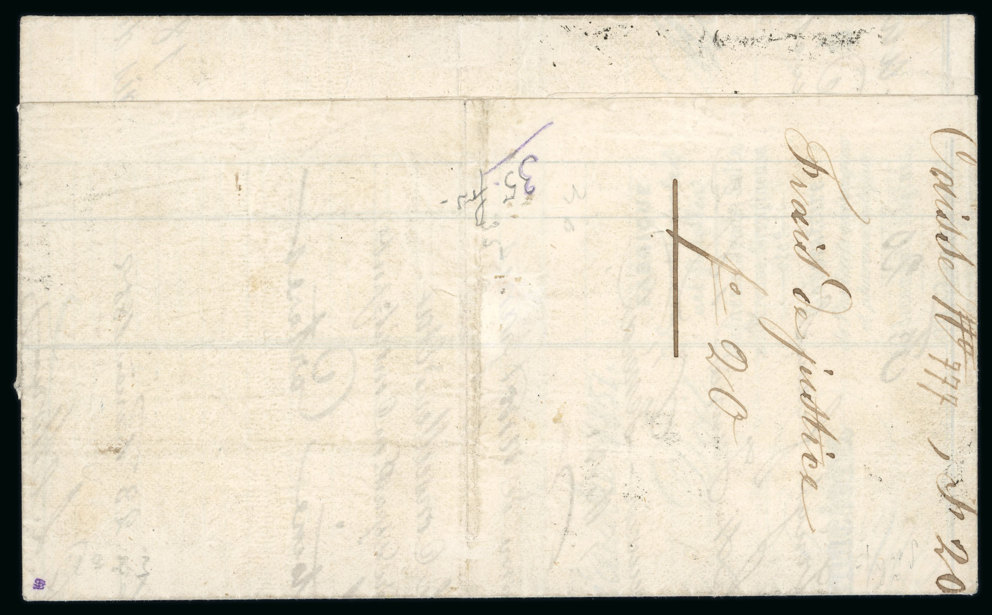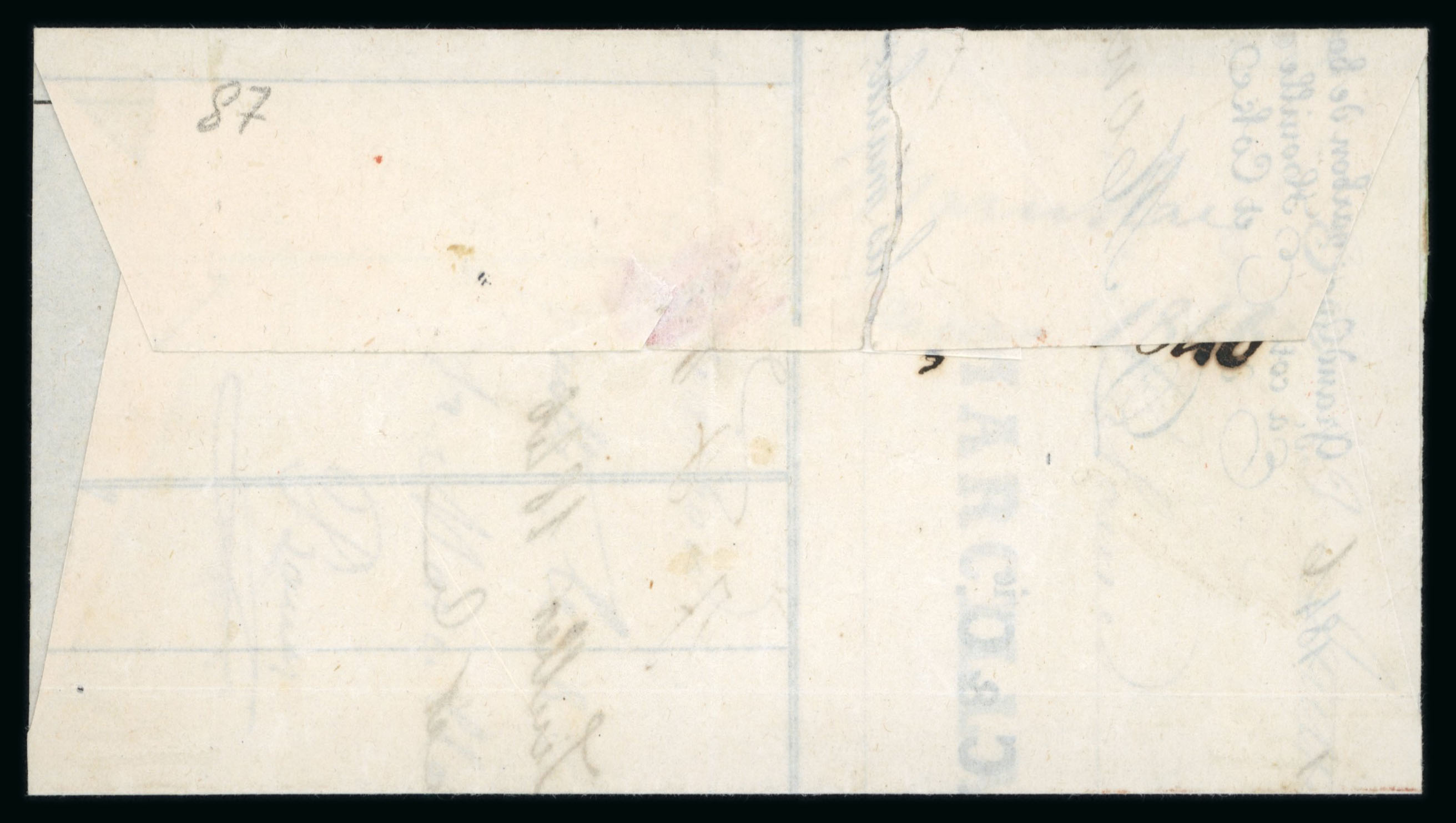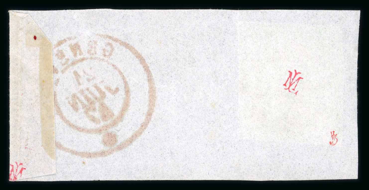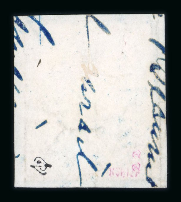 nicht häufige Entwertung, wovon R. Schäfer nur 14 kennt, sowie eine extrem seltene Verwendung eines Genfer Ganzsachenausschnittes während der markenlosen Zeit; es soll nur ein weiterer Brief existieren. Atteste Eichele 2018, Marchand 2025. SBK = CHF
