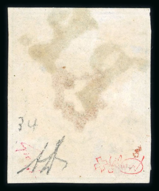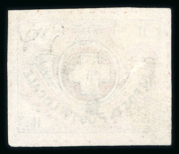 1850, Orts-Post mit Kreuzeinfassung, Type 16, farbfrisch, allseits breitrandig, rückseitig kleine dünne Stelle, ungebraucht ohne Gummi. Eine seltene Marke. Signiert Weid, Atteste Weid 1999 (als tadellos), Marchand 2024. SBK = CHF 5000. (Image 1)