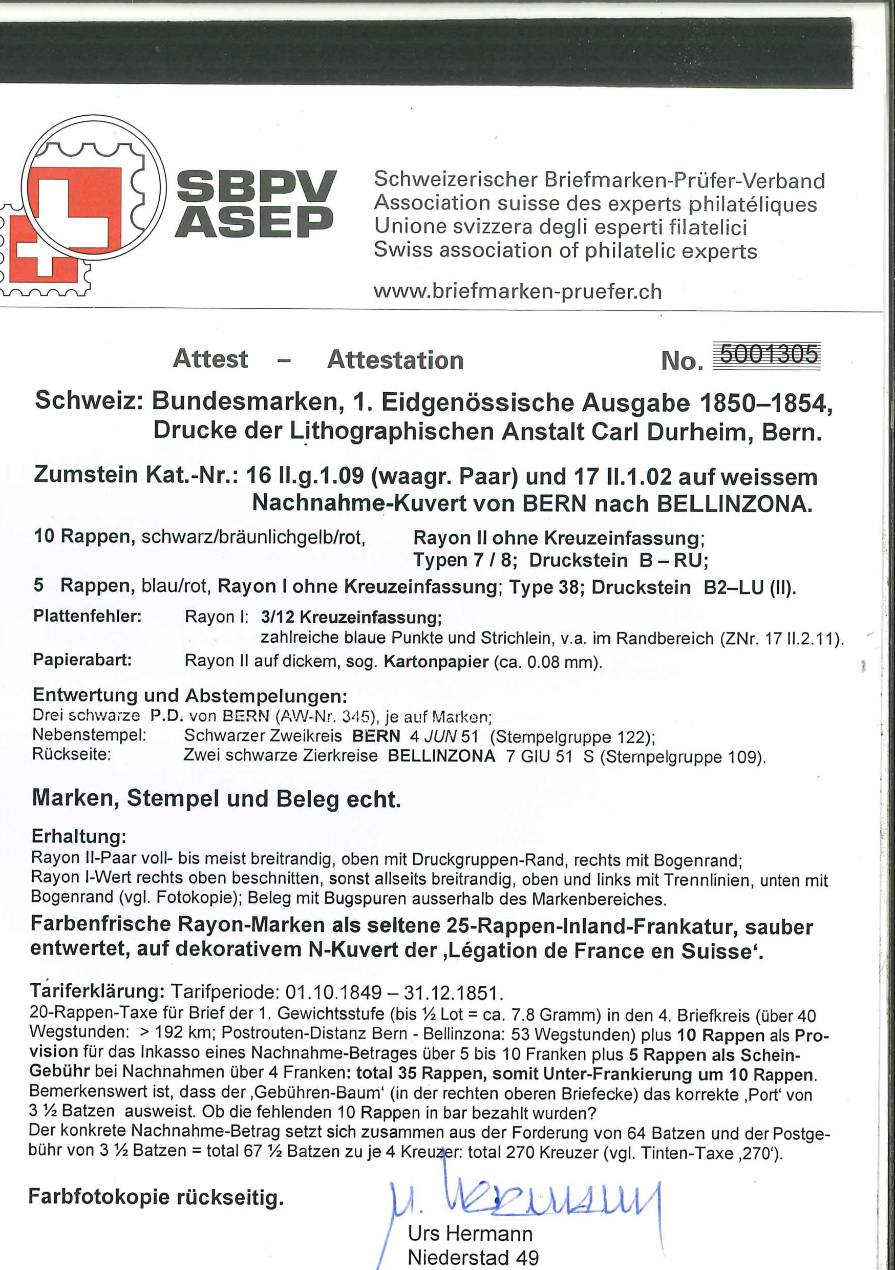Abstempelungsrarität. Attest Berra 2013. (Image 1)