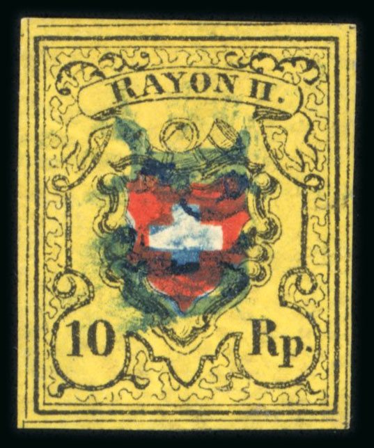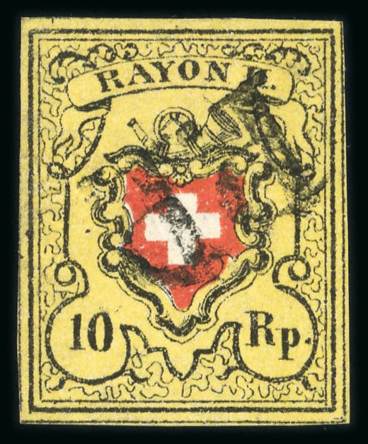 1850, Rayon II, Type 7, Stein B-RO, auf dickem Kartonpapier, farbfrisch, allseits breitrandig geschnitten, voll entwertet mit schwarzer eidgenössischer Raute. Befund Marchand 2014. SBK = CHF 450. (Image 1)