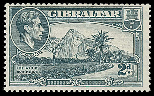 1065 Unmounted imageGibraltar: 1938-51 2d. grey perf. 131/2 watermark sideways, unmounted mint, fine. S.G. 124ab, cat. £800. Photo. (Image1)