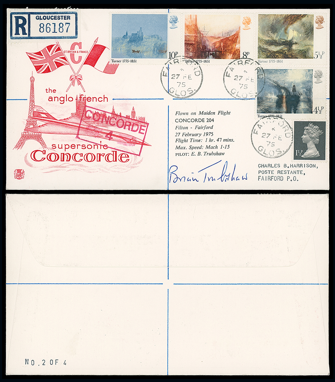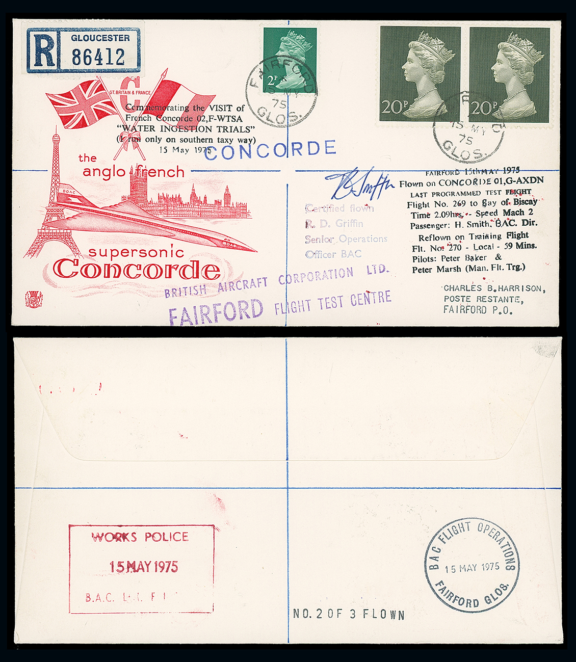 160 c, entire, etc. imageConcorde: 1975 (May 15) Last programmed Test Flight, cover signed by H. Smith director of B.A.C., number 2 of 4 flown. Photo. (Image1)