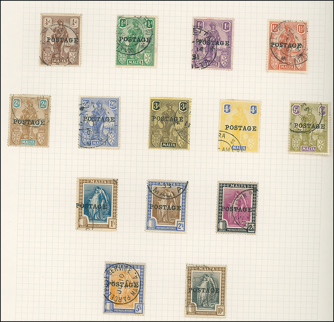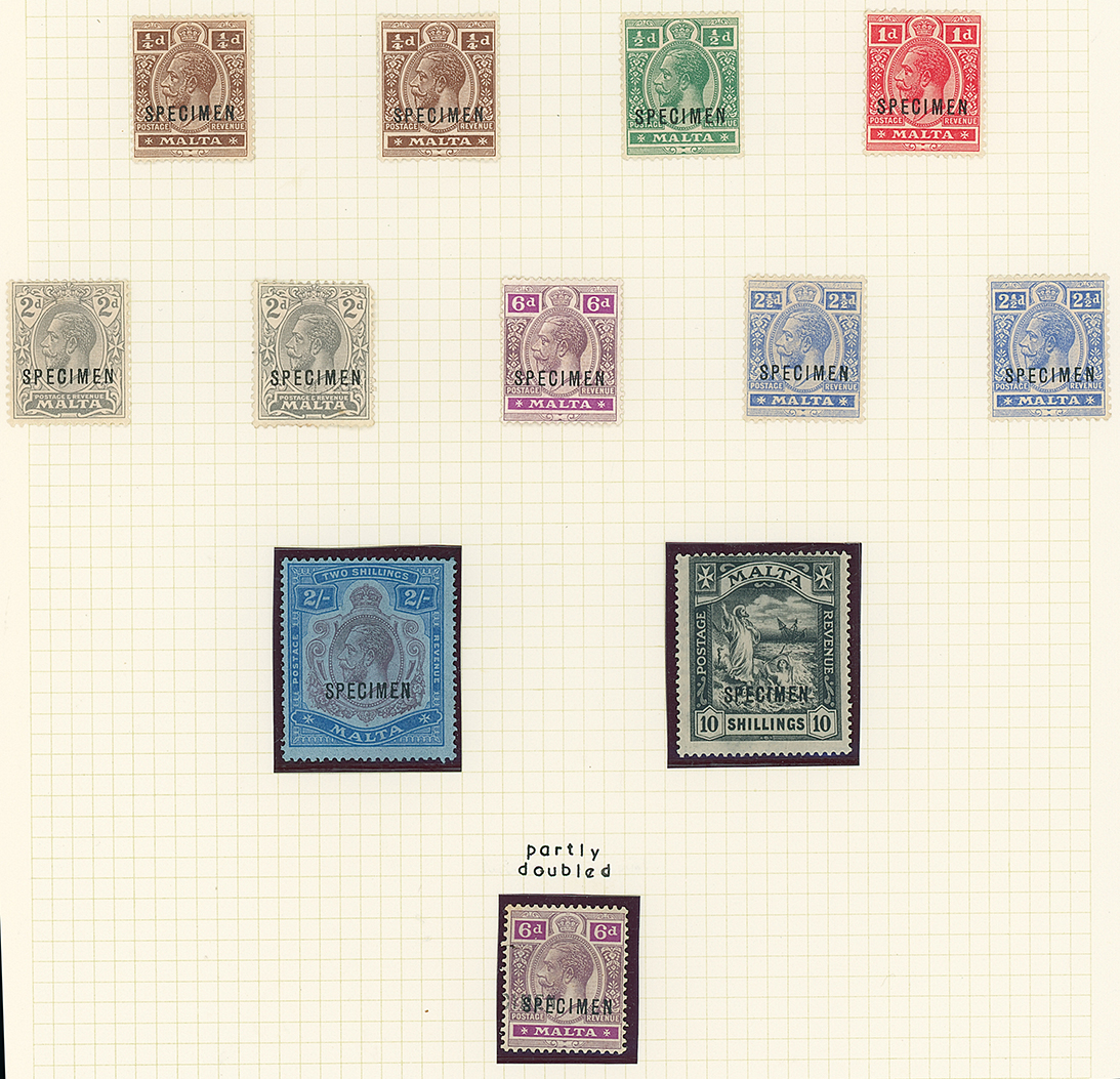Malta: Issued Stamps: King George V: 1921-22 Watermark Mult. Script CA 1/4d. to 10s. set overprinted “SPECIMEN”, with extra 1/4d., 2d., 21/2d., also 6d. with partly double “SPECIMEN”, mainly fine and fresh with