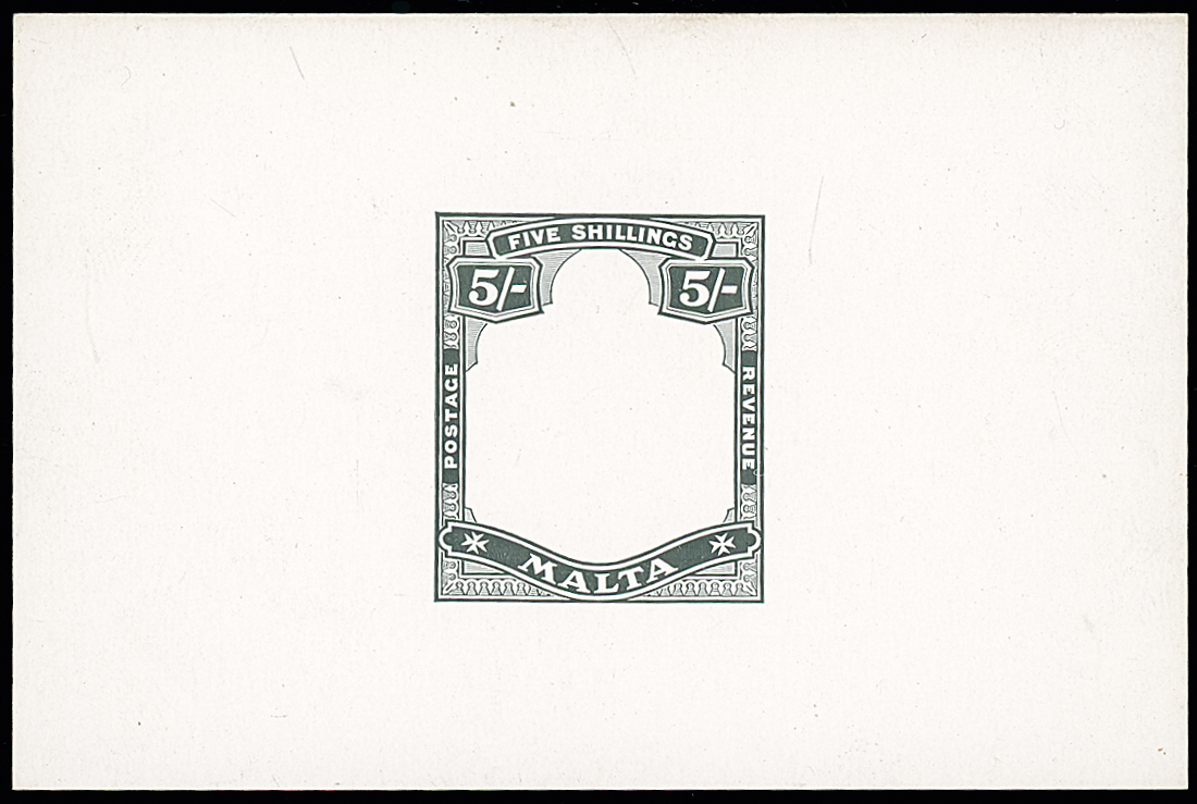 Malta: Issued Stamps: King George V: 1922-26 Melita, Proofs, Master die proof with blank country name and value tablets, used for the 1s. to 10s. values, printed in black on glazed card (92 x 60mm), marked