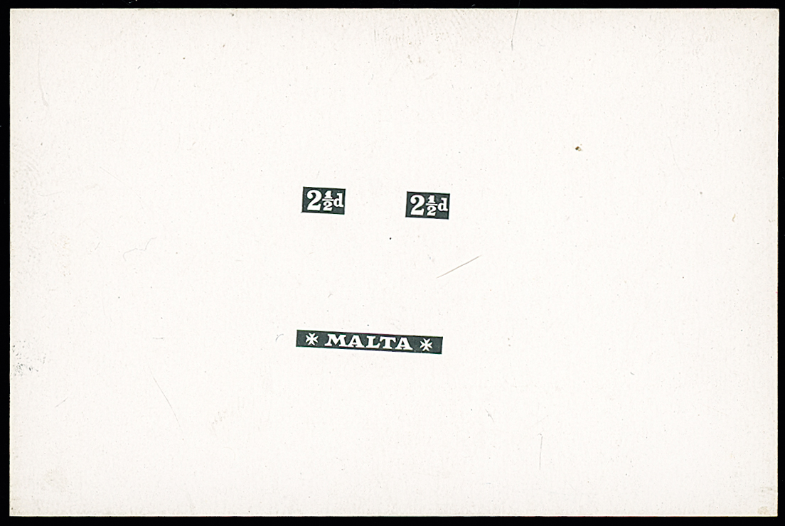 Malta: Issued Stamps: King George V: Key Plates, Proofs, 21/2d. die proof of the name and duty plate only, in black on glazed card (92 x 60mm), unmarked and undated. Photo. (Image1)